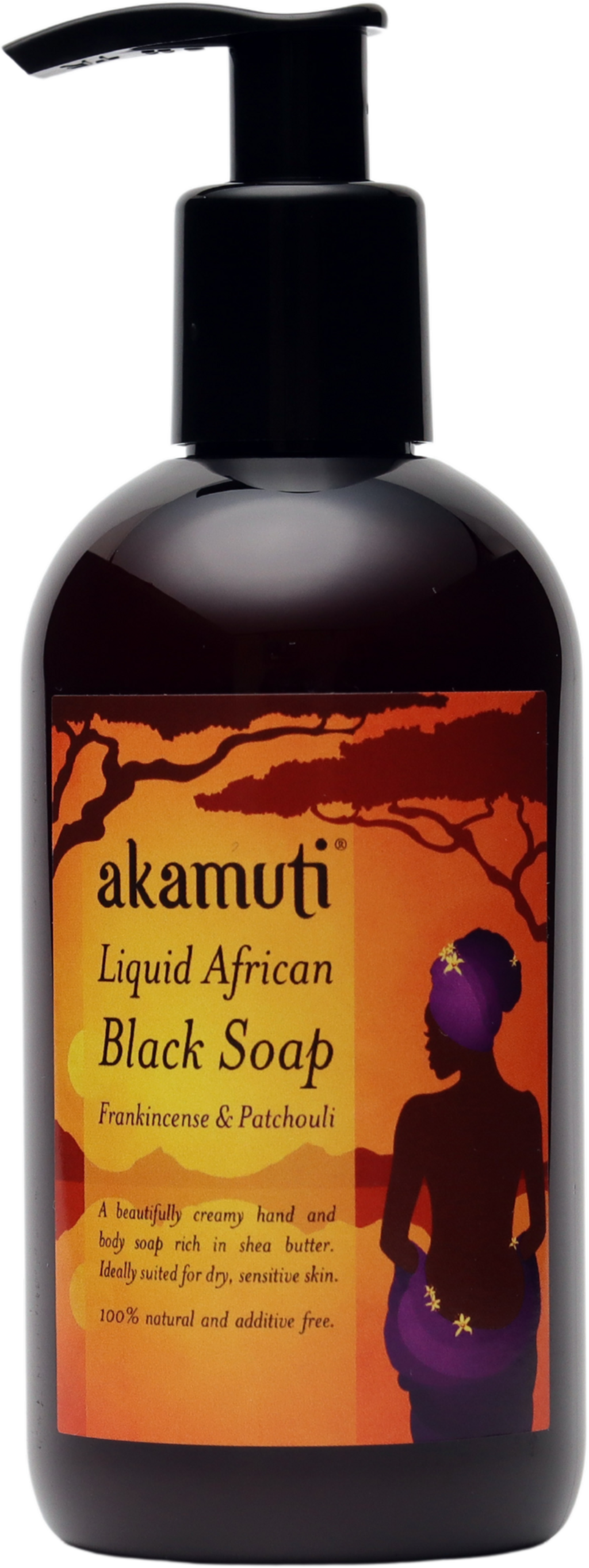 Akamuti Liquid African Black Soap Frankincense & Patchouli, 250 ml