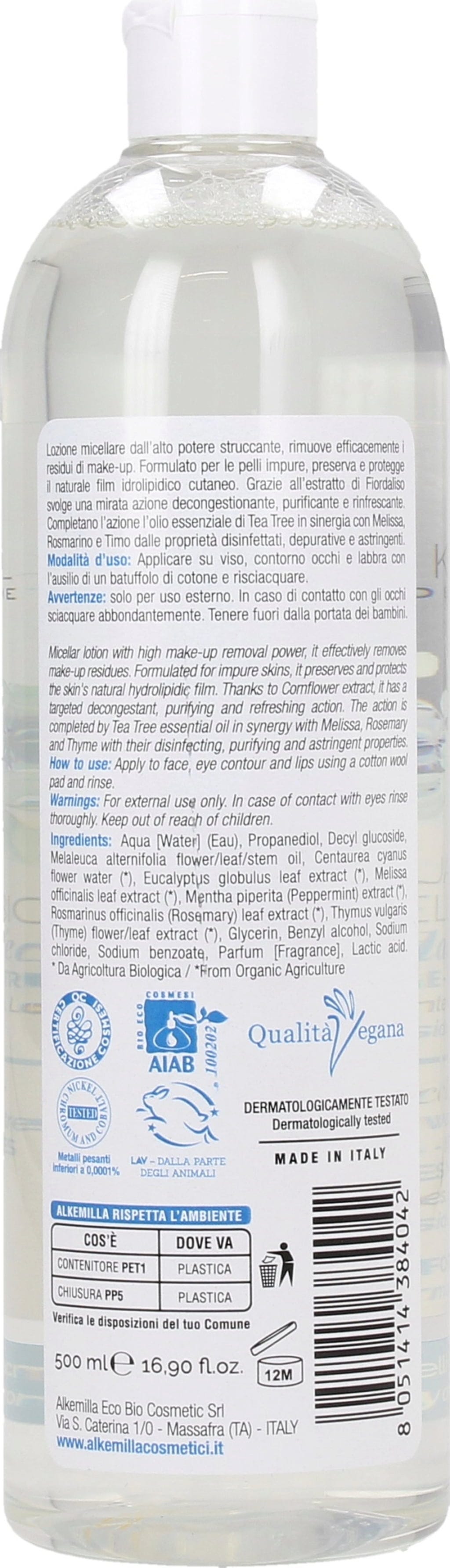 Alkemilla Eco Bio Cosmetic Apă Micelară Albăstrele și Tea Tree, 500 ml