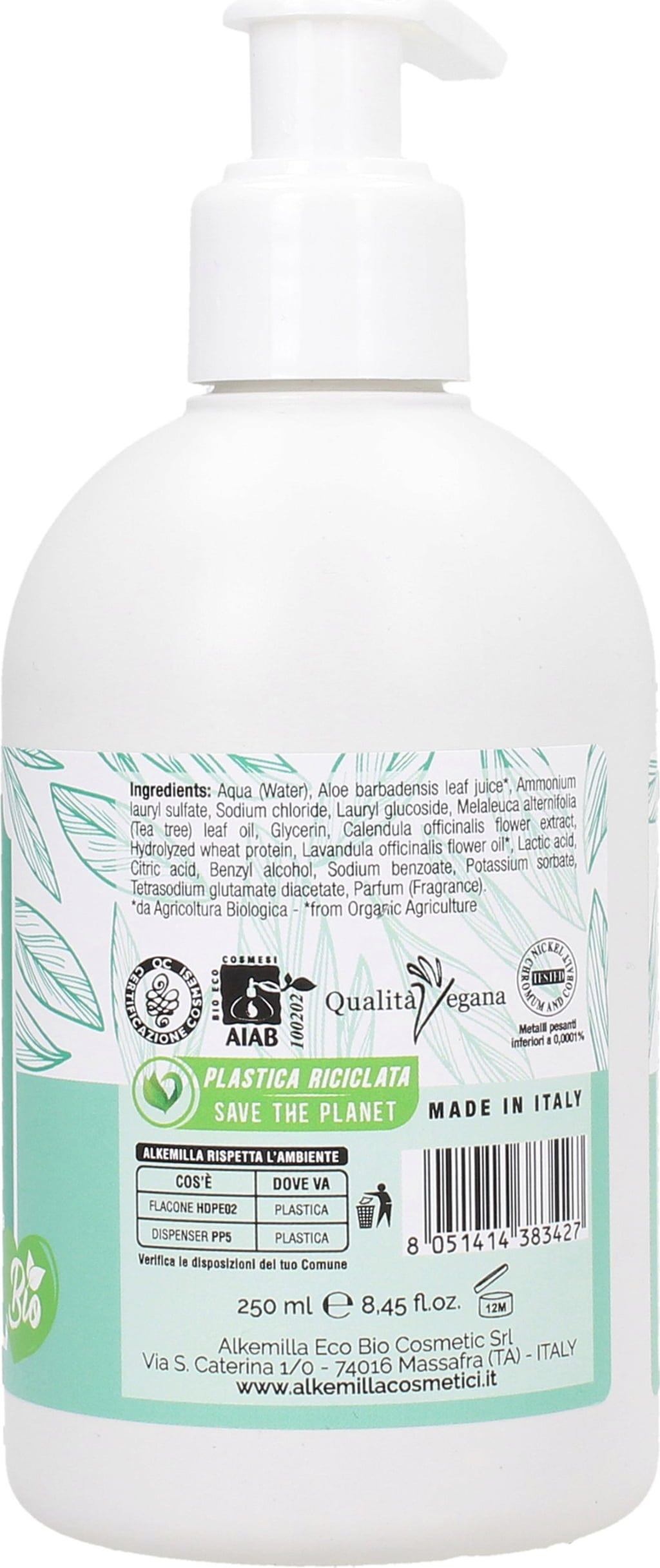 Producător: Alkemilla Eco Bio Cosmetic SRL, Via Santa Caterina 1/O, 74016 , Massafra (TA), Italia, info@alkemillacosmetici.it