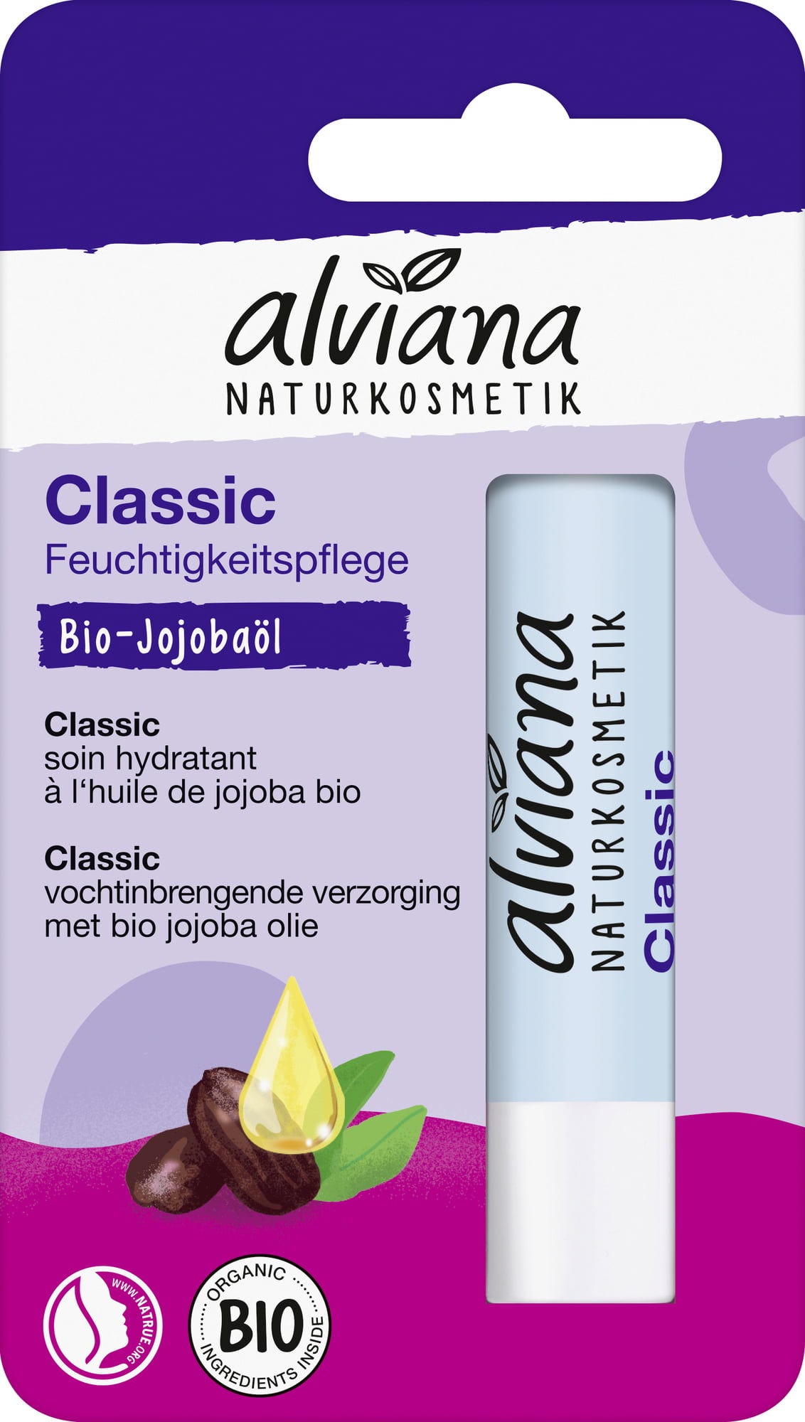 Acest balsam delicat de la alviana este un adevărat clasic între produsele de îngrijire a buzelor. Datorită ingredientelor naturale precum uleiul de jojoba, untul de shea și uleiul de măsline provenite din culturi biologice controlate, buzele sunt foarte bine și durabil îngrijite, fiind hidratate suficient. Fiind atât de blând, balsamul poate fi utilizat fără probleme de toți membrii familiei.