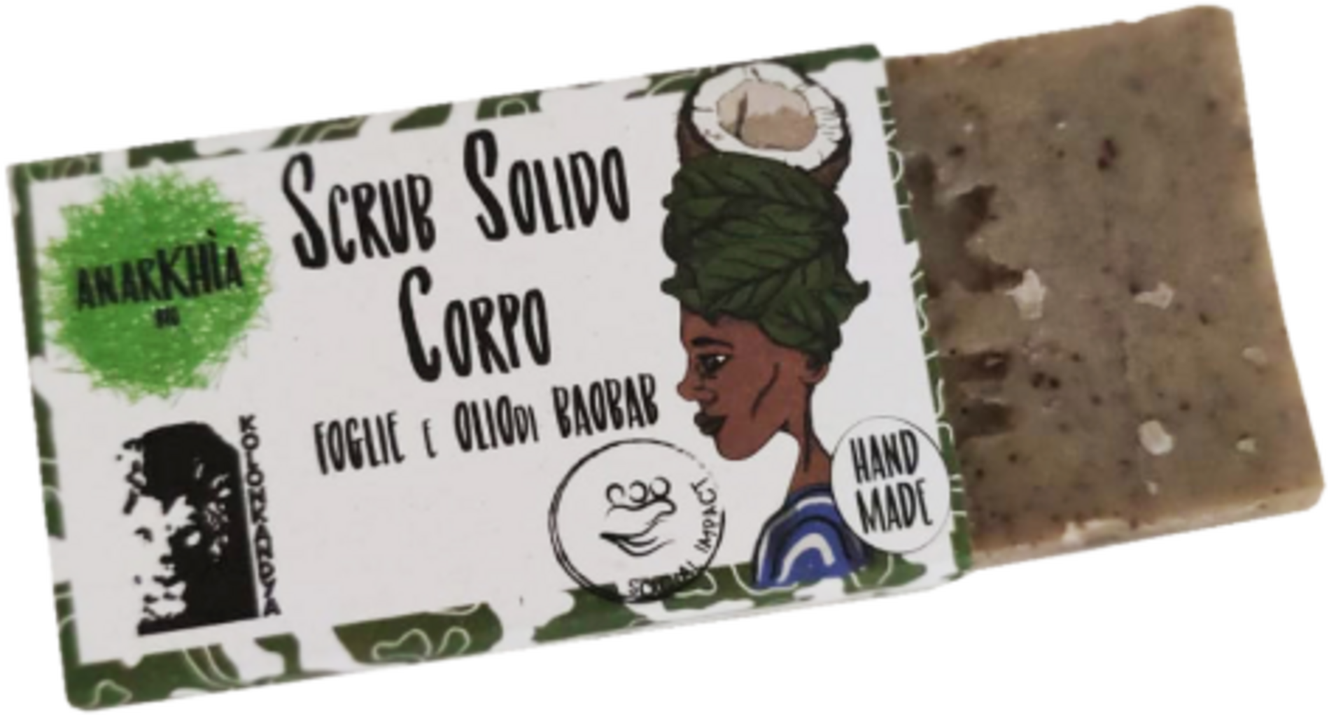 Săpunul exfoliant natural de la Anarkhia este fabricat cu grijă și dragoste. Produsele sunt realizate manual de femei din Burkina Faso în cadrul proiectului „Laboratorul de Săpun” al Kolon Kandya Italia Onlus. Săpunul exfoliant conține frunze de baobab și ulei prețios din aceste frunze, oferind o exfoliere blândă, dar profundă. Astfel, sunt eliminate celulele moarte și pielea este intens hrănită.