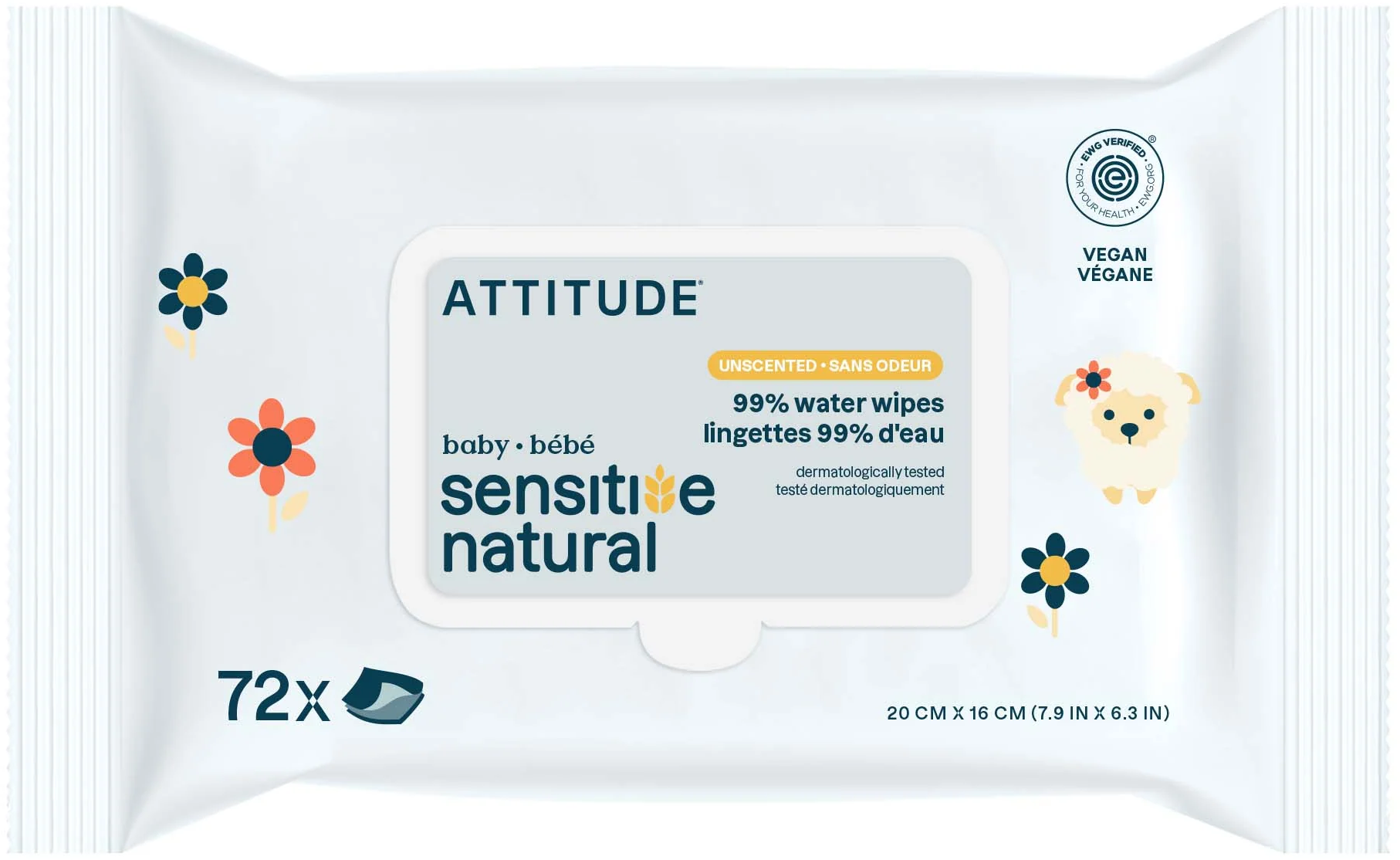 Attitude Sensitiv Natural Baby Wipes, 72 bucăți