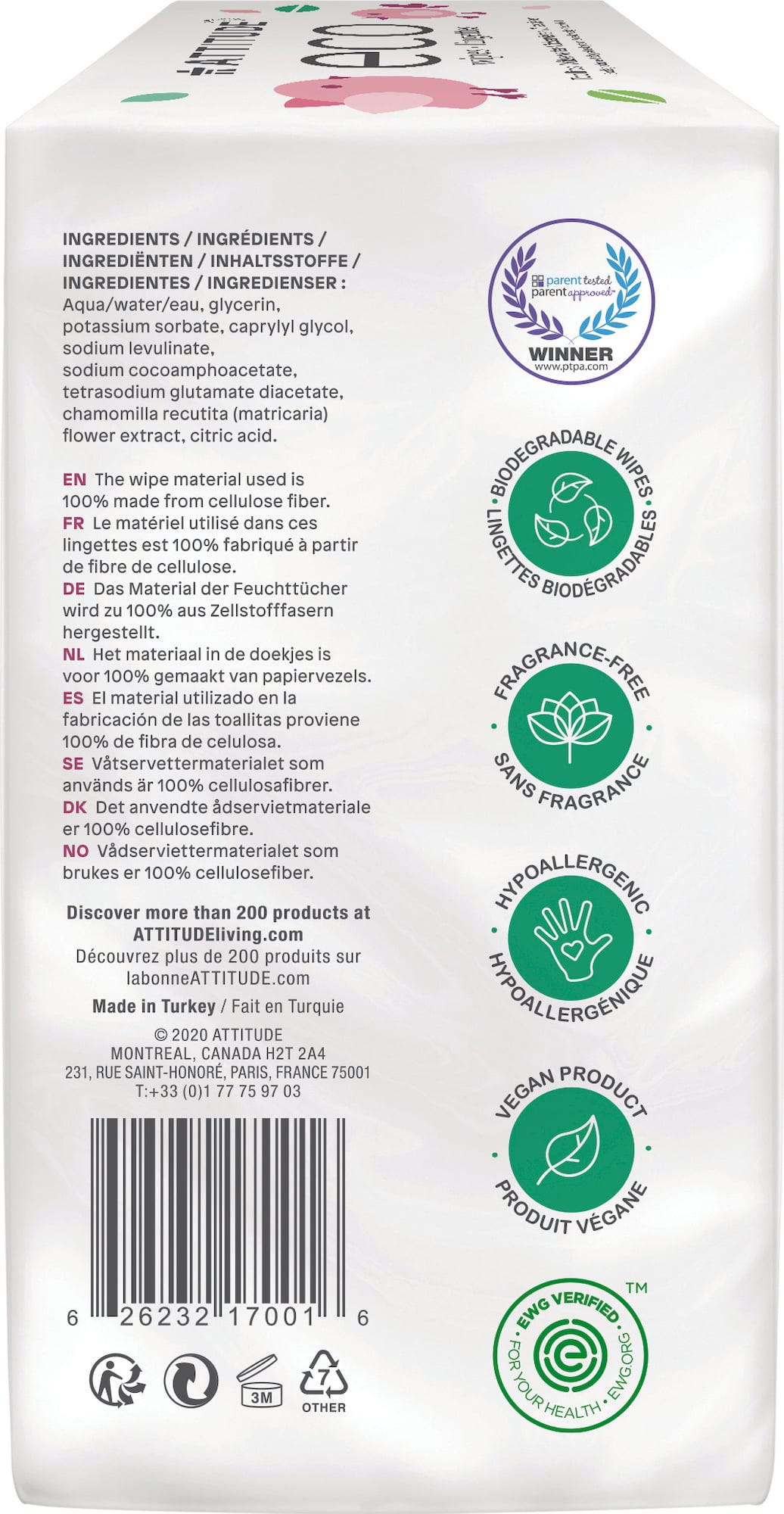 Șervețelele umede de la Attitude sunt realizate din fibre de celuloză sustenabile și nu conțin parfumuri sintetice. De asemenea, au o compatibilitate excelentă cu pielea și sunt complet biodegradabile.