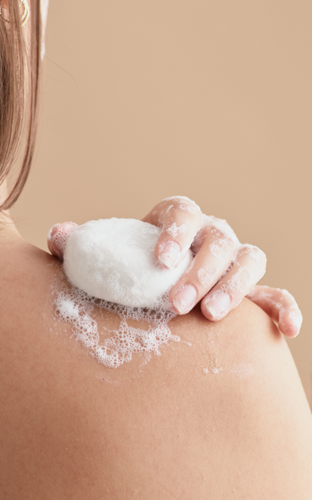 - Umeziți produsul de curățare și treceți-l peste față și corp.