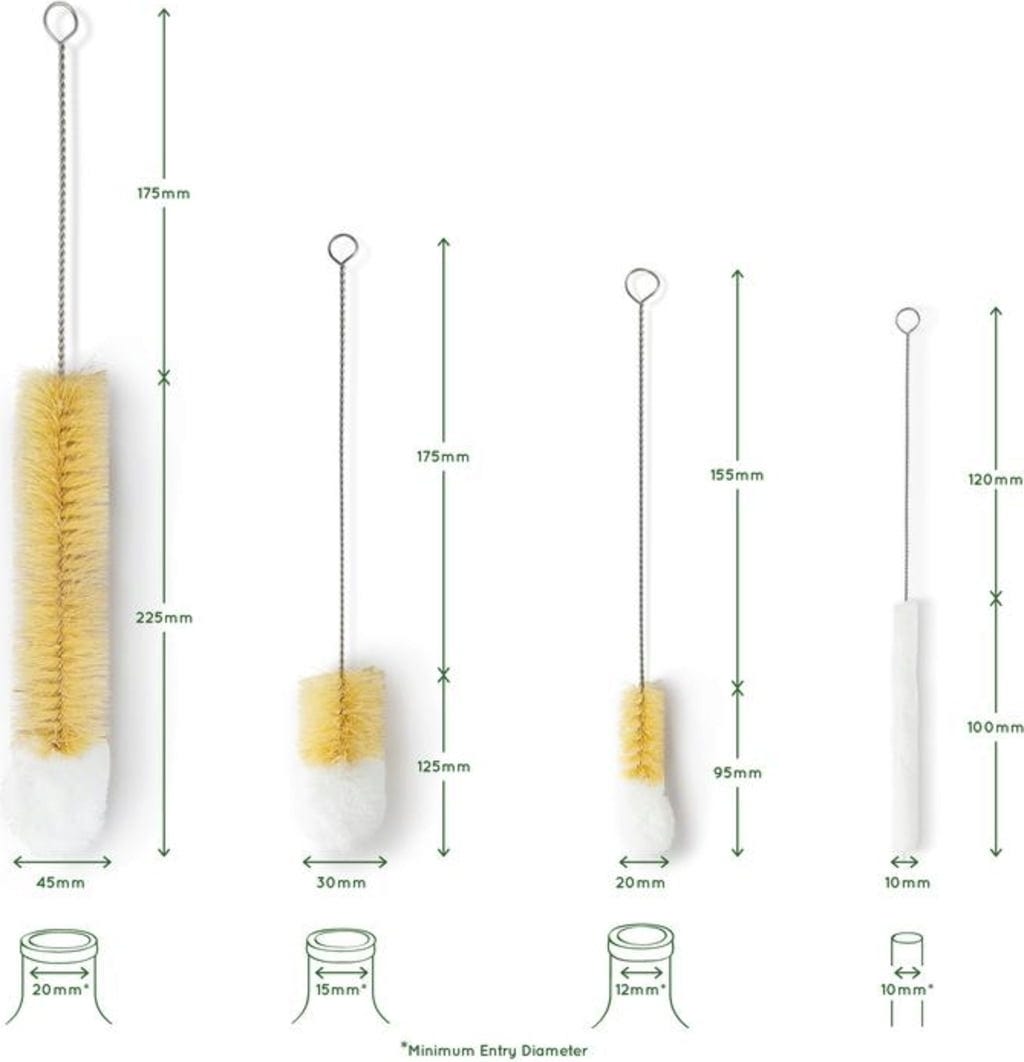 Pentru ca sticlele de băut reutilizabile și paiele să țină cât mai mult timp, este important să fie curățate regulat. Nici o problemă cu acest set. Chiar și borcanele și paharele vor străluci din nou cu ajutorul acestor perii. Periile sunt dotate cu peri din sisal vegan și un vârf moale din bumbac pentru a curăța perfect și locurile greu accesibile.