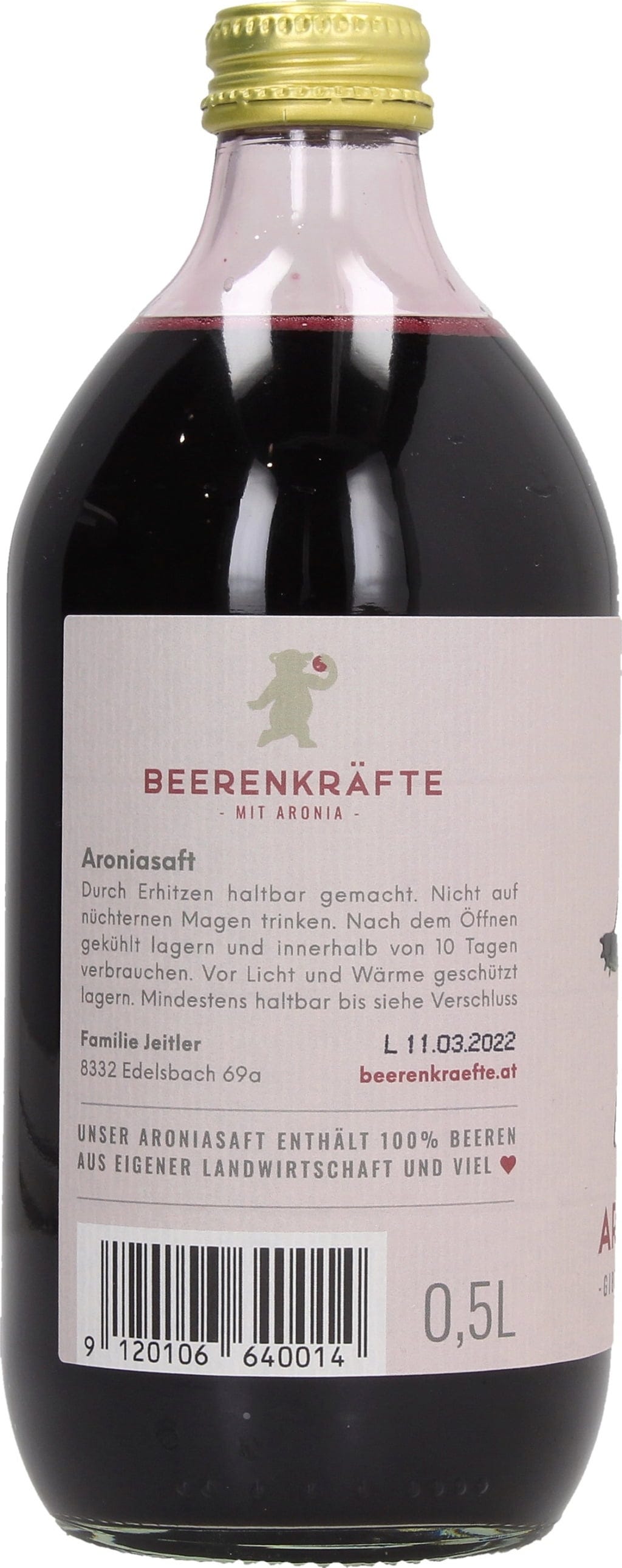Sucul de aronia de la Beerenkräfte este fabricat 100% din fructe de aronia din Stiria. Acestea sunt prelucrate proaspăt imediat după recoltare.