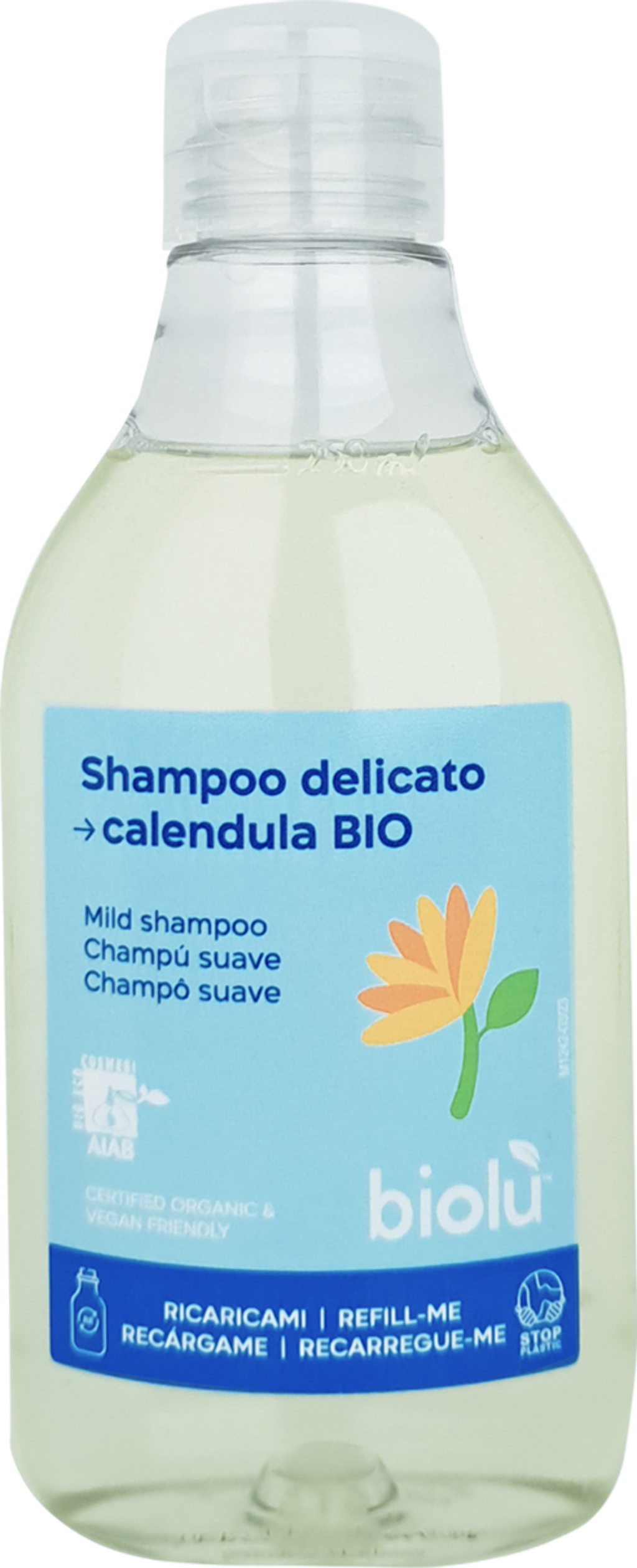 Acest șampon extra-blând este ideal pentru întreaga familie. Conține extracte bio din calendula, flori de portocală, frunze de măslin și rădăcini de cicoare, fiind potrivit pentru utilizare zilnică. Formula sa oferă proprietăți protectoare, revigorante și fortificante, asigurând un păr strălucitor. Parfumul său plăcut de ylang-ylang, mandarină și portocală răsfață simțurile.