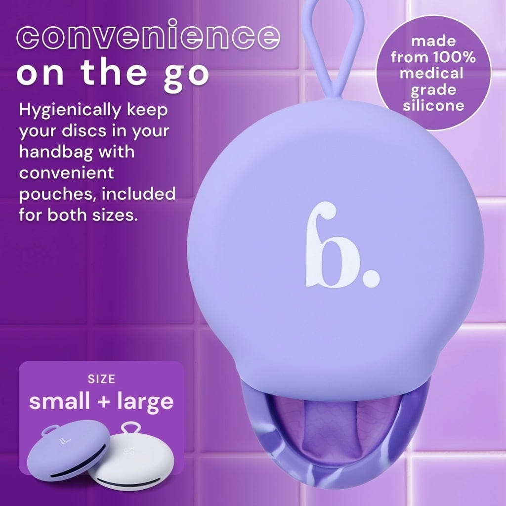 În acest set Comfydisc de la bodyotics, găsești 2 discuri menstruale de dimensiuni diferite, atât pentru zilele cu flux mai abundent, cât și pentru cele cu flux mai redus. Datorită sforii de retragere practice, discurile pot fi scoase foarte ușor. Deoarece setul include și 2 săculeți din silicon pentru depozitare, poți schimba discurile menstruale oriunde și oricând, chiar și atunci când nu ai posibilitatea de a le curăța.