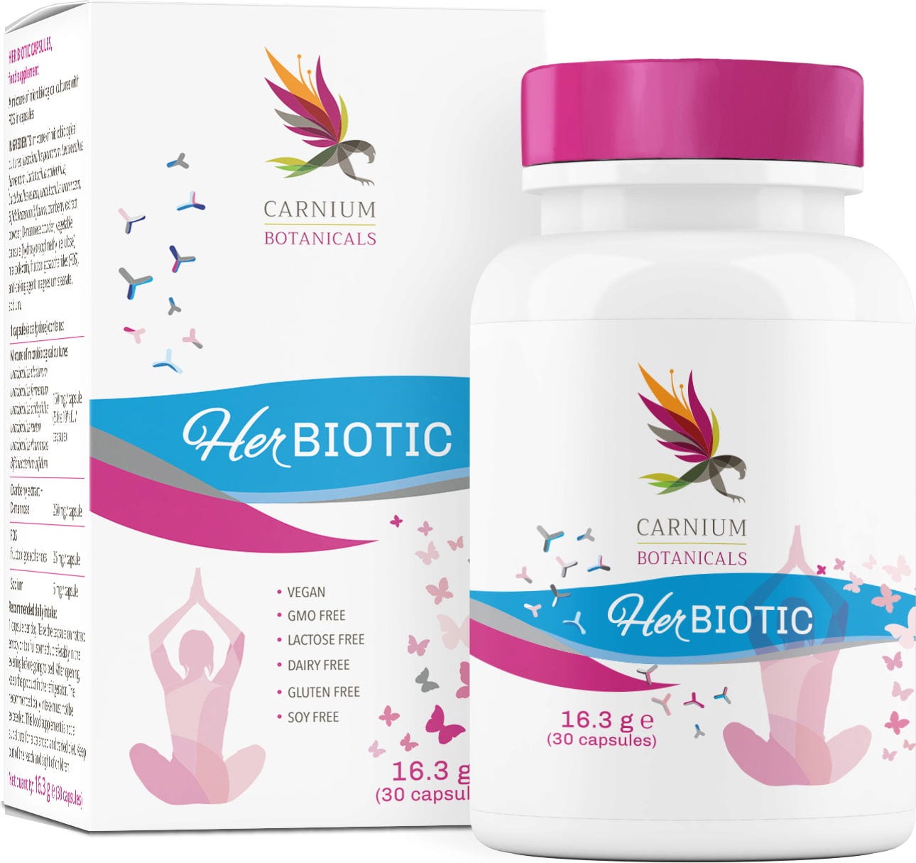 Her Biotic de la Carnium Botanicals a fost dezvoltat special pentru femei. Capsulele conțin, printre altele, 6 tulpini de bacterii atent alese, extract de merișor și D-manoză. Datorită formulei vegane, aceste capsule te susțin optim în viața de zi cu zi. Potrivit pentru persoanele cu vârsta peste 14 ani.