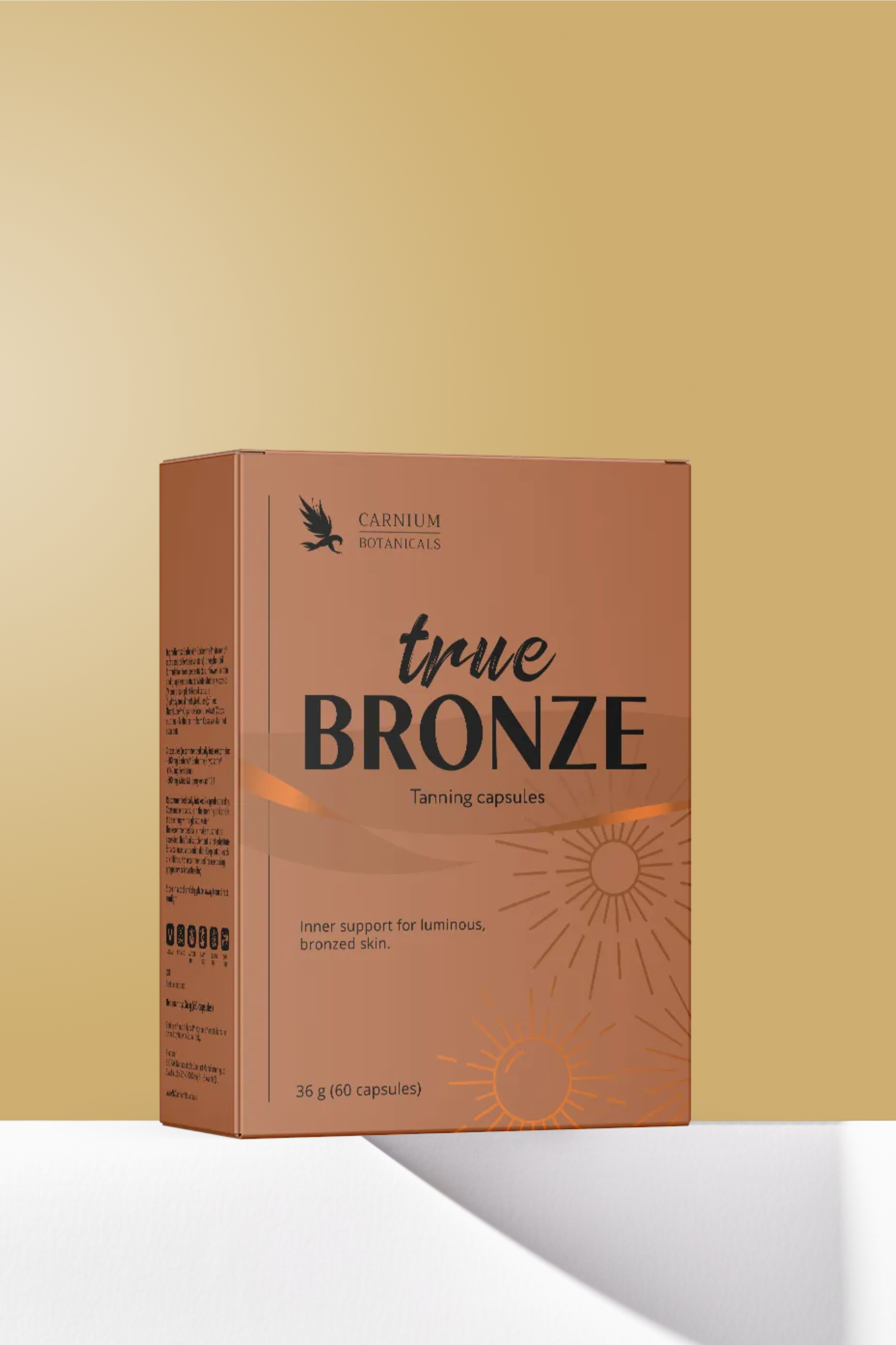 Capsulele pentru bronzare TrueBRONZE sunt aliatul tău natural pentru un ten strălucitor și frumos, care durează pe tot parcursul anului. Combinatia sa atent selecționată de Beta-Caroten, Licopen și Astaxantin este ideală pentru toți cei care doresc o bronzare delicată și îngrijirea pielii fără expunere inutilă la soare sau produse artificiale.