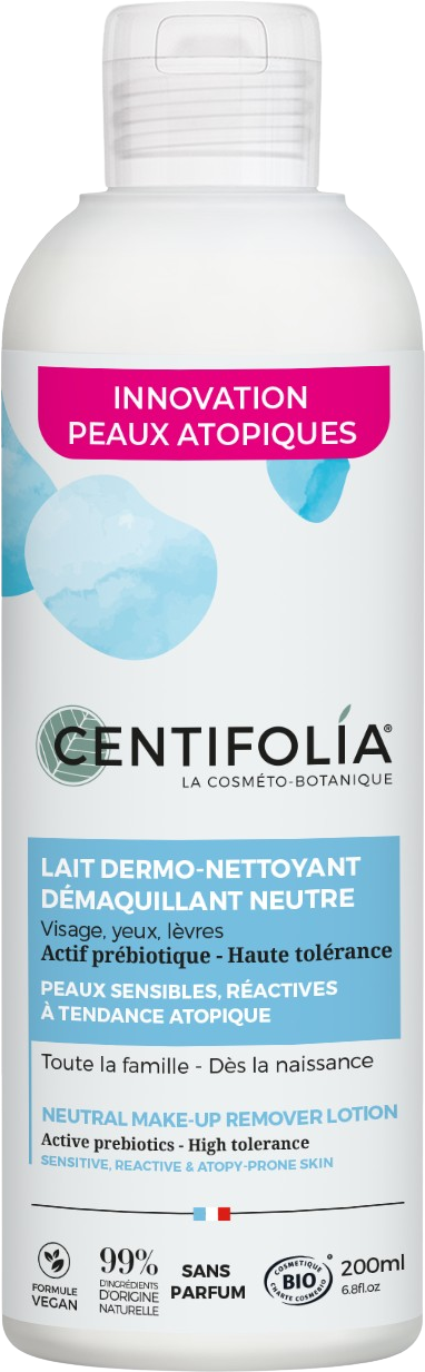 Această loțiune demachiantă blândă este ideală pentru a curăța delicat pielea sensibilă și reactivă, predispusă la dermatită atopică, pentru întreaga familie. Formula se bazează pe sinergia unică a unui prebiotic și a unui polizaharid activ, pentru a satisface nevoile tipurilor de piele atopică.