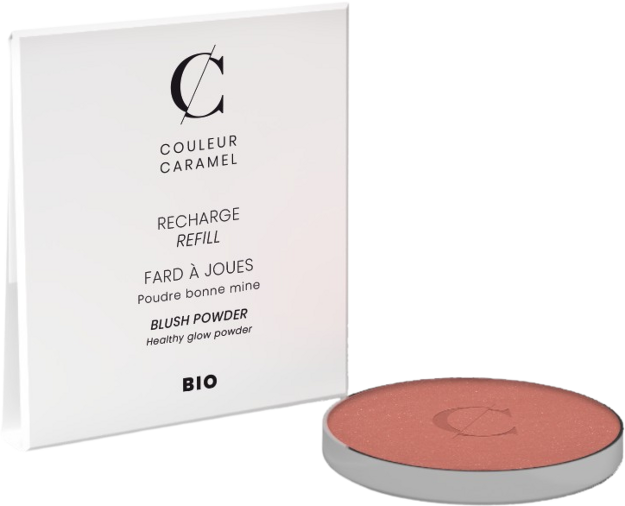 Această reumplere înlocuiește fardul de obraz de la Couleur Caramel, odată ce acesta s-a epuizat. Pudra micronizată, fără talc, oferă un finisaj mătăsos și îngrijește pielea cu ajutorul uleiurilor bio alese, bogate în antioxidanți și amidon de porumb bio emolient.