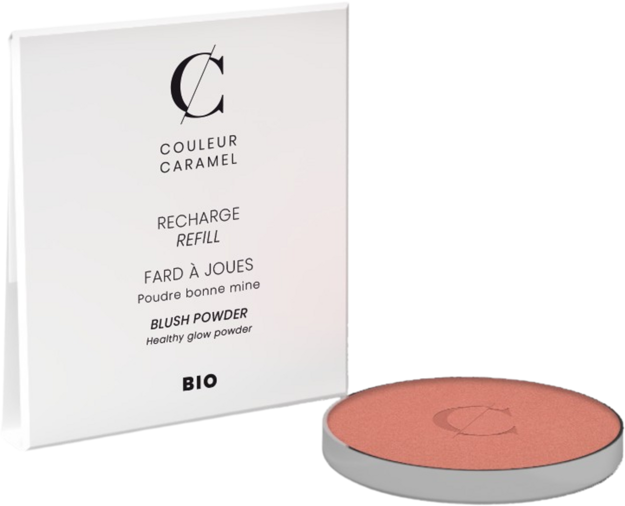 Această reumplere înlocuiește fardul de obraz de la Couleur Caramel, odată ce acesta s-a epuizat. Pudra micronizată, fără talc, oferă un finisaj mătăsos și îngrijește pielea cu ajutorul uleiurilor bio alese, bogate în antioxidanți și amidon de porumb bio emolient.