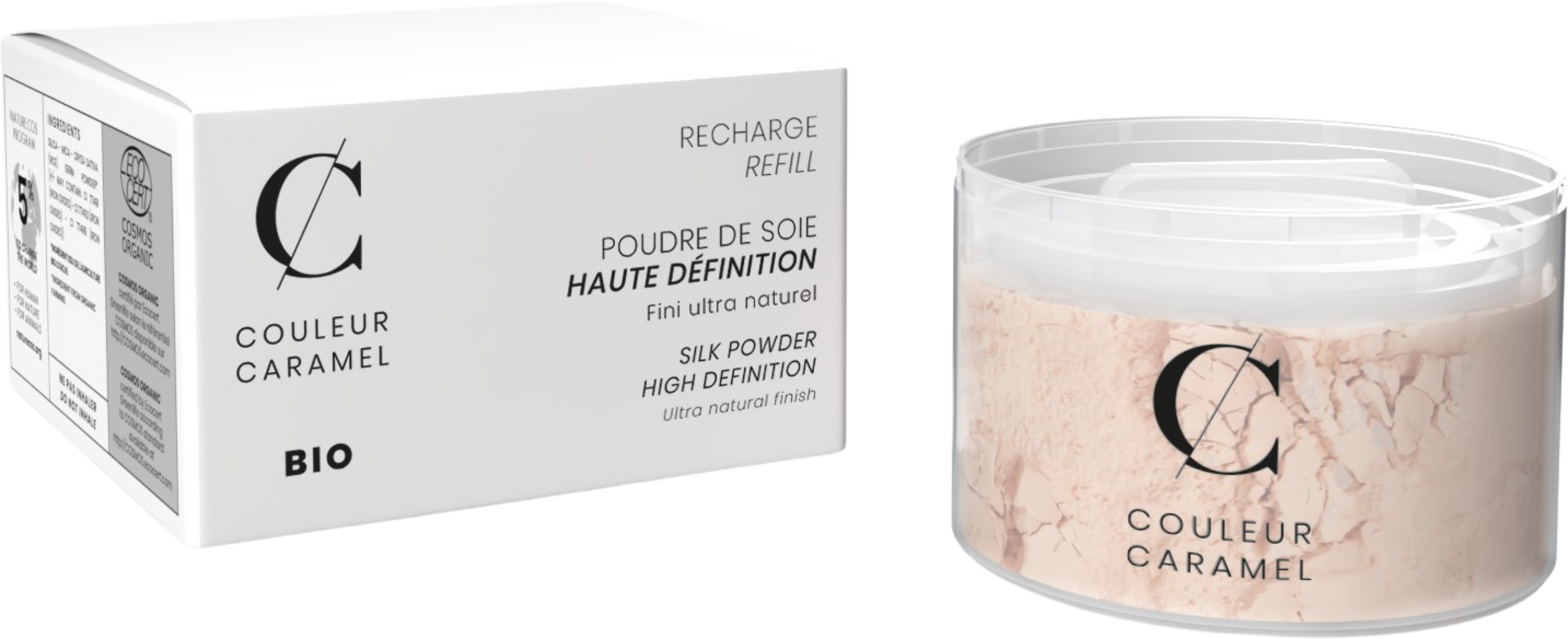 Pudra de mătase de la Couleur Caramel este un ajutor indispensabil pentru a fixa perfect fondul de ten. Nuanța sa universală nu conține talc și asigură un finisaj ultra-natural cu efect de „a doua piele”. În plus, datorită pudrei de orez bio și siliciului, are un efect matifiant.