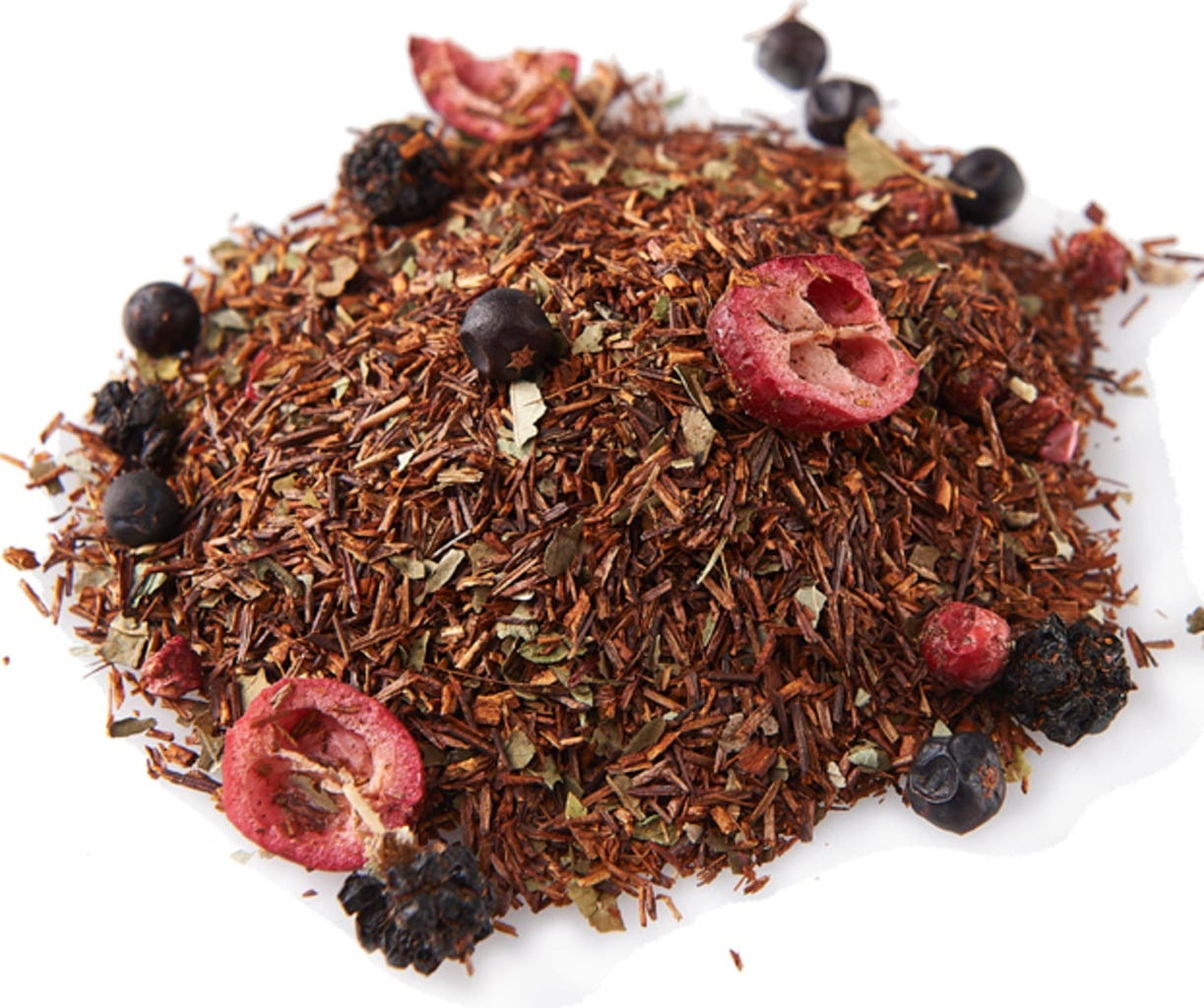 Rooibos, Wacholderbeeren, Brombeeren, Brombeerblätter, Johannisbeerblätter, Aroma, Cranberry-Stücke, Himbeeren, Heidelbeeren, Cranberries