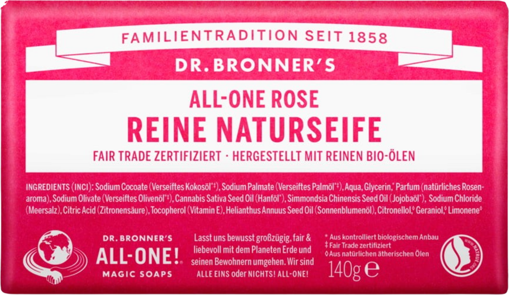 Dr. Bronner's Bar Soap Rose, 140 g