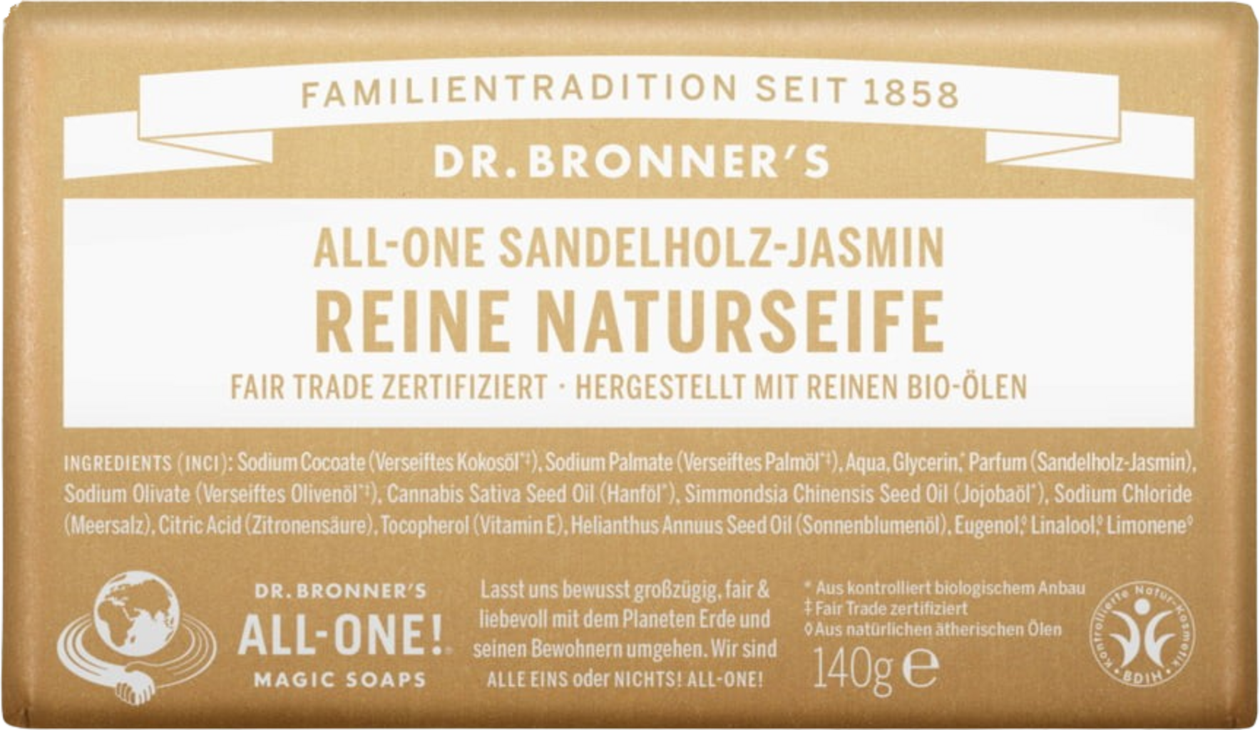 Dr. Bronner's Săpun solid Lemn de santal Iasomie, 140 g