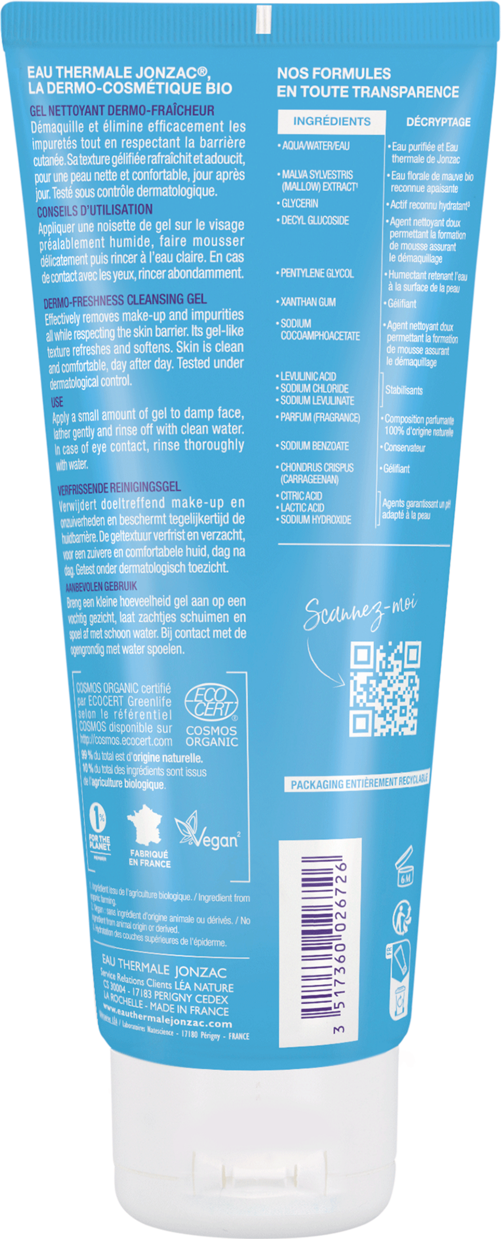 Aqua, Malva Sylvestris Extract[1], Glycerin, Polyglyceryl-4-Caprate, Polyglyceryl-6 Caprylate/Caprate, Caprylyl/Capryl Glucoside, Lactobacillus Ferment, Levulinic Acid, Sodium Levulinate, Sodium Benzoate, Parfum, Lactic Acid, Sodium Hydroxyde