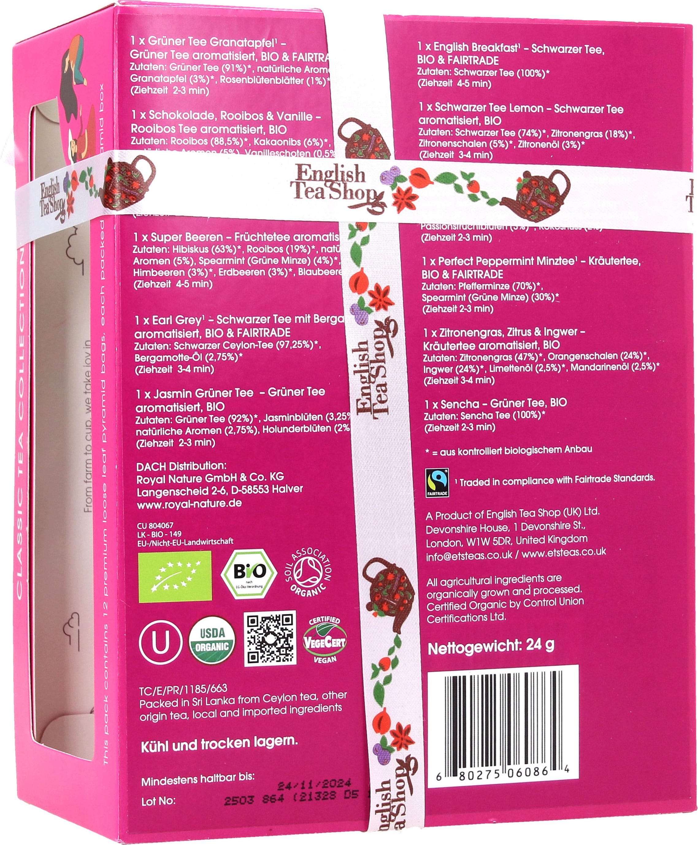 English Tea Shop Colecție bio de ceaiuri clasice, 12 Teebeutel (je 24 g) (288 g)
