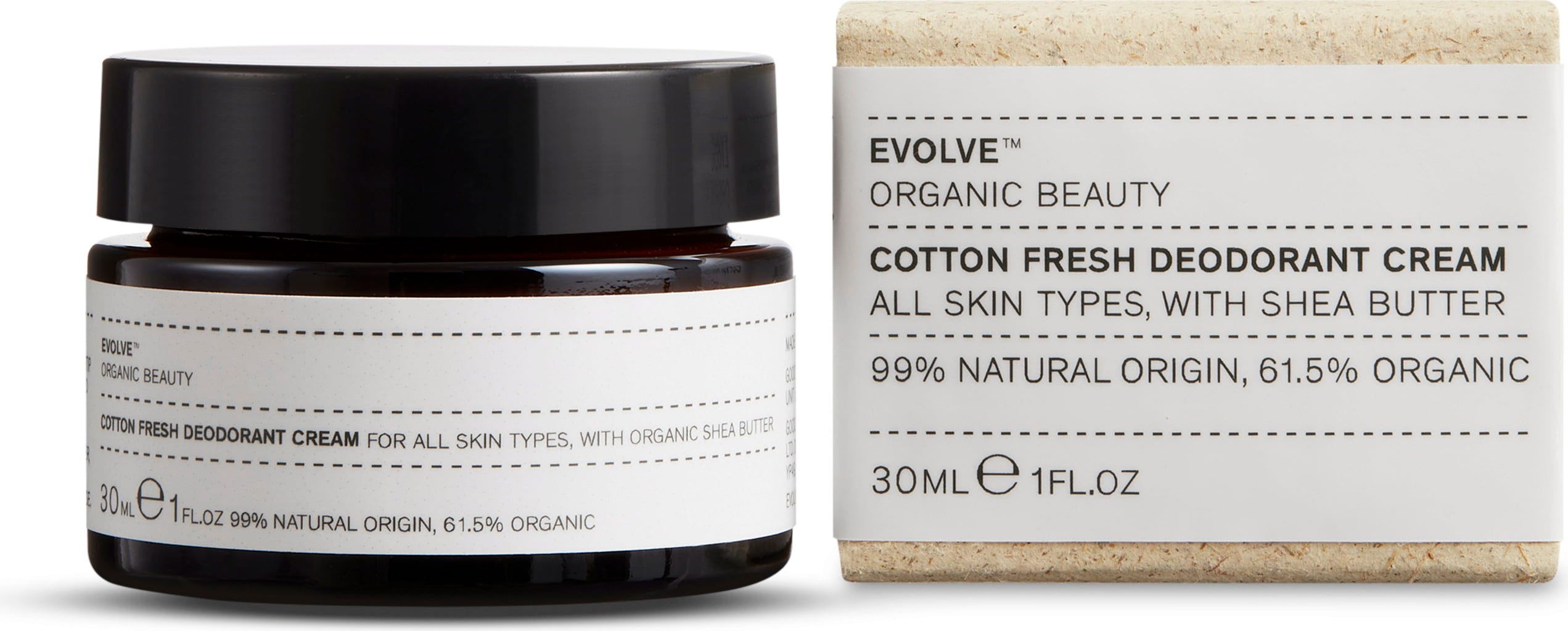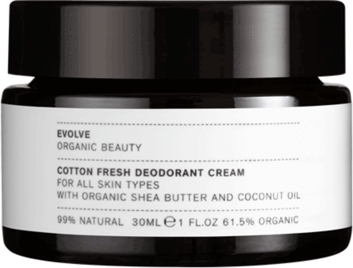 Crema deodorant naturală și vegană Cotton Fresh de la Evolve oferă protecție de lungă durată împotriva mirosului neplăcut de corp, datorită formulei sale fără aluminiu, bazată pe bicarbonat de sodiu și uleiuri esențiale pure. În același timp, ingredientele vegetale de calitate, precum uleiul de cocos și untul de shea, asigură o îngrijire delicată a zonei sensibile de sub braț. Parfumul fin provine din ingrediente 100% naturale și hipoalergenice.