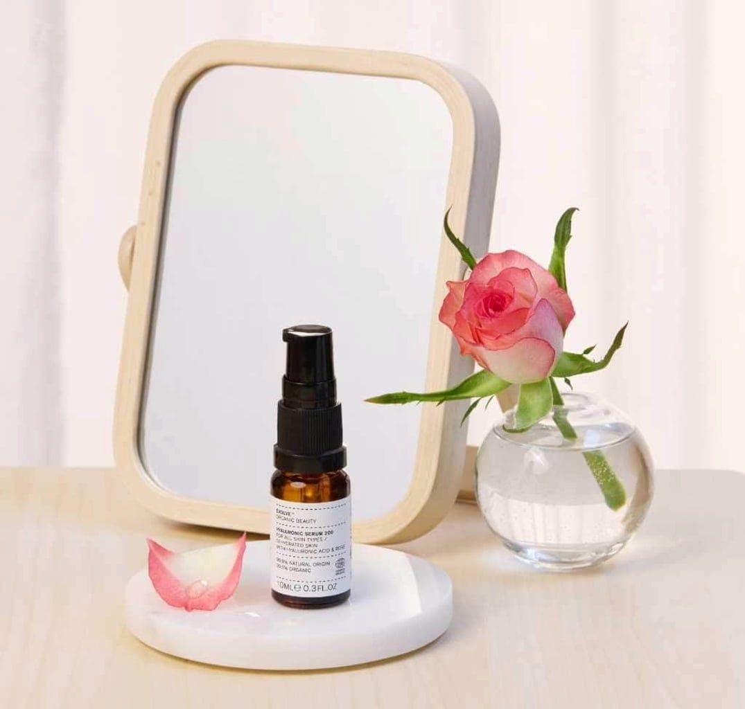 Acest ser concentrat și transparent de acid hialuronic conține 200 mg de acid hialuronic la 30 ml. Acest ingredient are proprietăți dovedite de hidratare în profunzime, ajutând la umplerea și netezirea liniilor fine și a ridurilor, oferind un aspect proaspăt tenului. Extractul de rodie organic are proprietăți protectoare și face pielea catifelată. Datorită apei de trandafiri organice incluse, serul are un parfum delicat de flori.