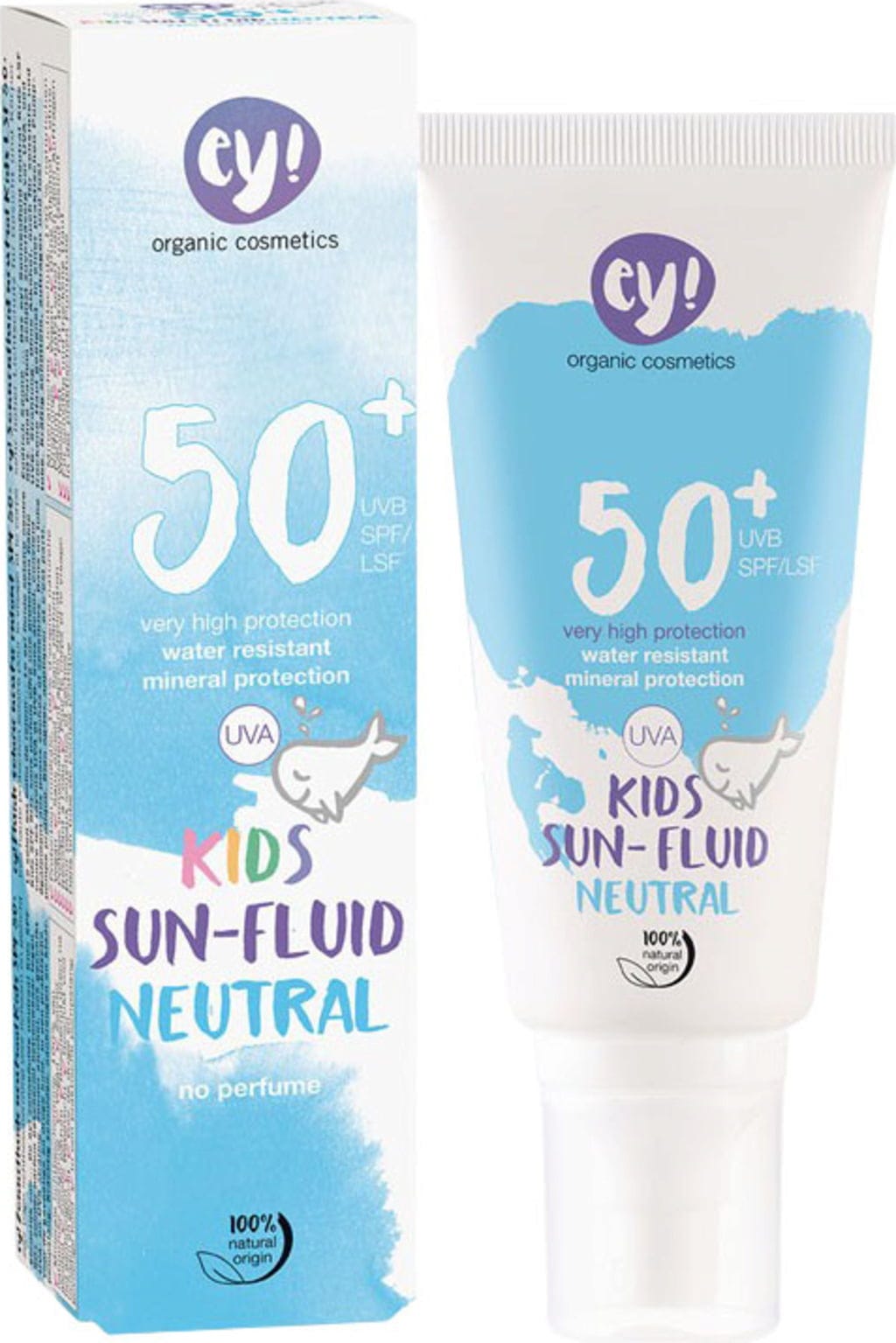 Fluidele solar neutru de la ey! a fost dezvoltat pentru pielea sensibilă și fotosensibilă a copiilor. Oferă, datorită filtrelor minerale pure, un factor de protecție solară foarte ridicat de peste 50 și este liber de alcool și parfumuri. În plus, protecția solară este rezistentă la apă, respectă mediul și organismele marine și are un efect de îngrijire.