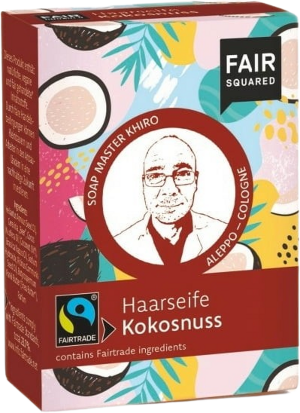 Săpunul de păr de la FAIR SQUARED este realizat manual folosind metoda de amestecare la rece și constă din ingrediente naturale și comerciale echitabile. Uleiul de cocos conține minerale valoroase, vitamine și acizi grași care pot întârzia producția de sebum a scalpului. Săpunul este, de asemenea, ideal pentru îngrijirea bărbii. Produsul vine la tine acasă într-un ambalaj fără plastic și este, de asemenea, o idee de cadou durabilă. Povestea de producție și origine a săpunului de păr poate fi vizionată în formă de film datorită codului QR de pe cutie.