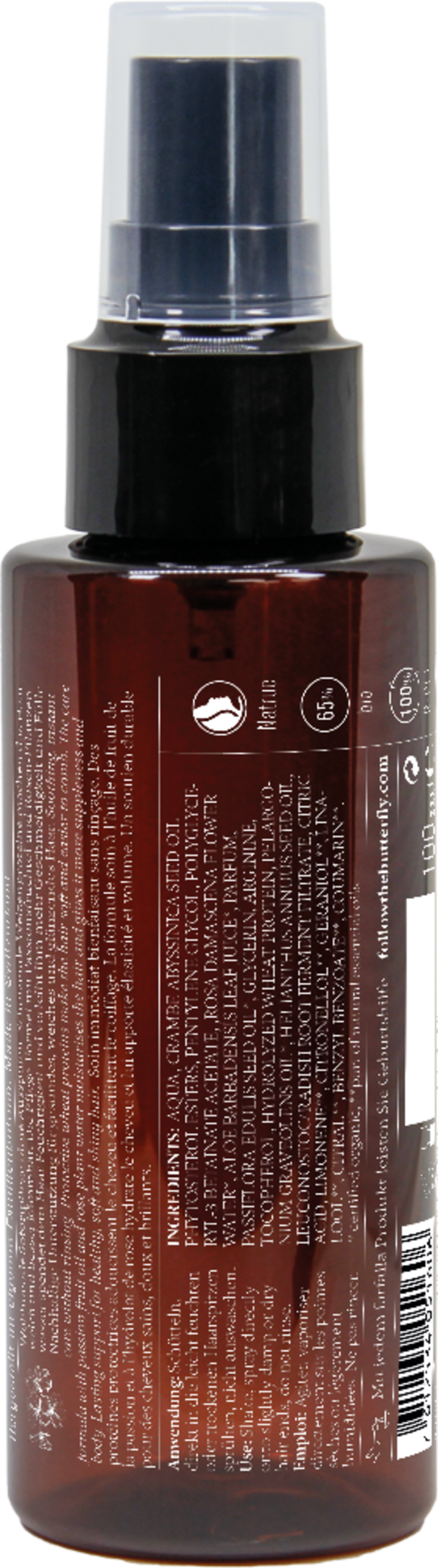 Acest conditioner leave-in oferă un efect de îngrijire imediată. Datorită proteinelor din grâu, părul devine minunat de moale și ușor de pieptănat. Uleiul fin de fructul pasiunii și apa de trandafiri oferă hidratare și un luciu natural. Parfumul floral încântă, de asemenea, simțurile.