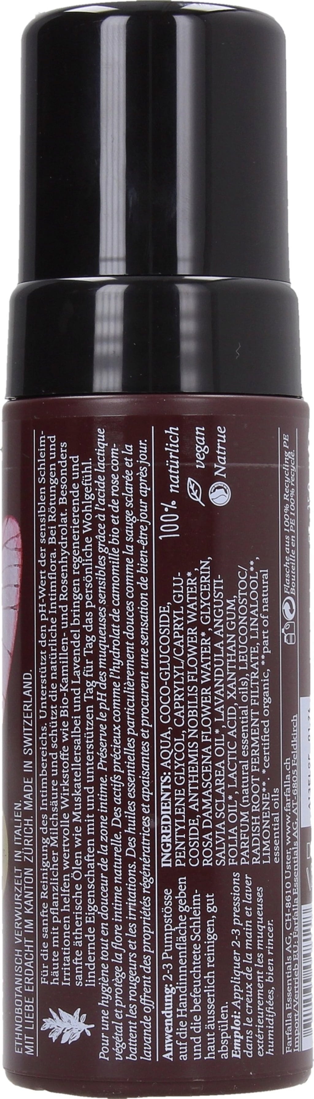 Această spumă de curățare delicată, cu un pH de 4,2-4,4, curăță zona intimă sensibilă în mod deosebit de blând, fără a afecta echilibrul delicat al mucoaselor. Acidul lactic vegetal protejează flora intimă naturală, în timp ce hidrolații de mușețel și trandafir previn roșeața. Uleiurile esențiale extrem de blânde conferă o senzație plăcută zilnic și ajută la regenerarea mai rapidă a pielii.