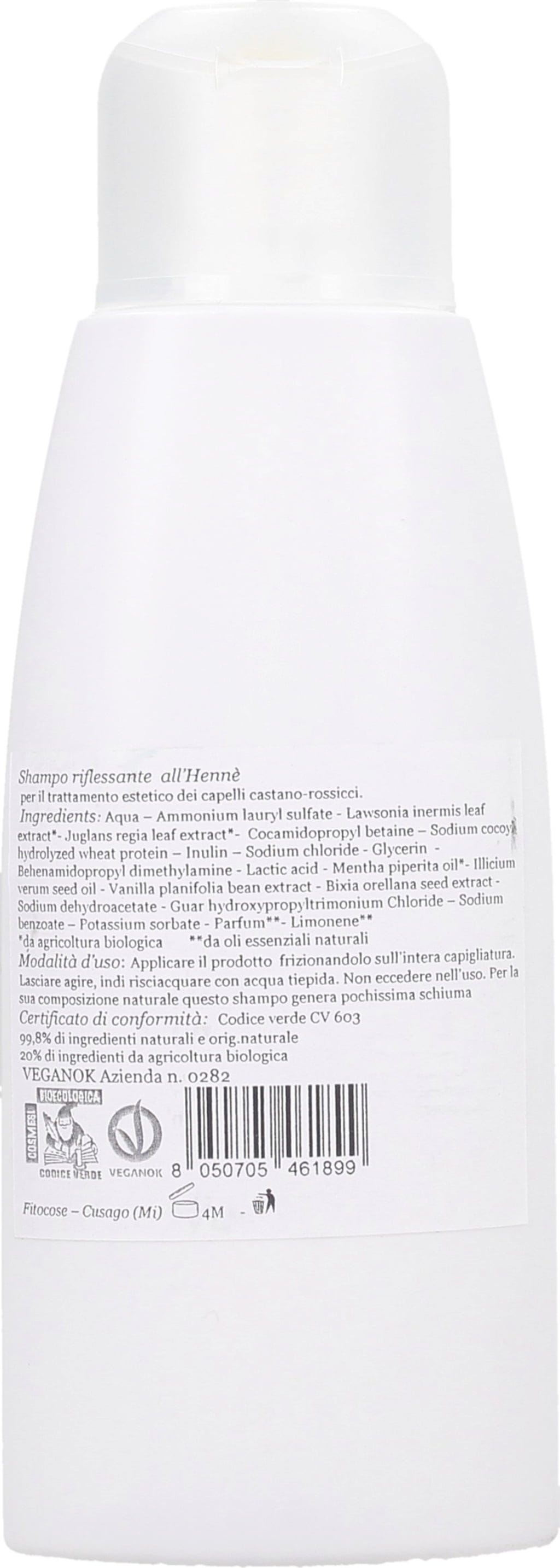 Acest șampon blând și vegan de la Fitocose asigură reflexe cupru pe părul roșu, colorat cu henna, și ajută, cu ajutorul extractelor de henna, la menținerea unei culori strălucitoare a părului.