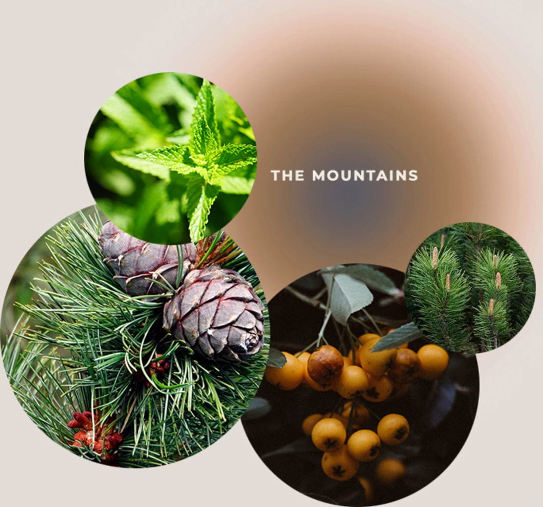 Aqua, Coco Glucoside, Maris Sal, Pinus Cembra Leaf/Twig Oil[1], Pinus Mugo Leaf Oil, Cymbopogon Winterianus Herb Oil, Juniperus Communis Wood Oil, Coriandrum Sativum Fruit Oil, Cedrus Deodara (Cedarwood) Wood Oil, Olea Europaea Leaf, Citric Acid, Sodium Levulinate, Sodium Anisate, Heptyl Glucoside, Xanthan Gum, Pinenes, Geraniol, Eugenol, Citronellol, Limonene, Linalool, Beta-Caryophyllene, Geranyl Acetate