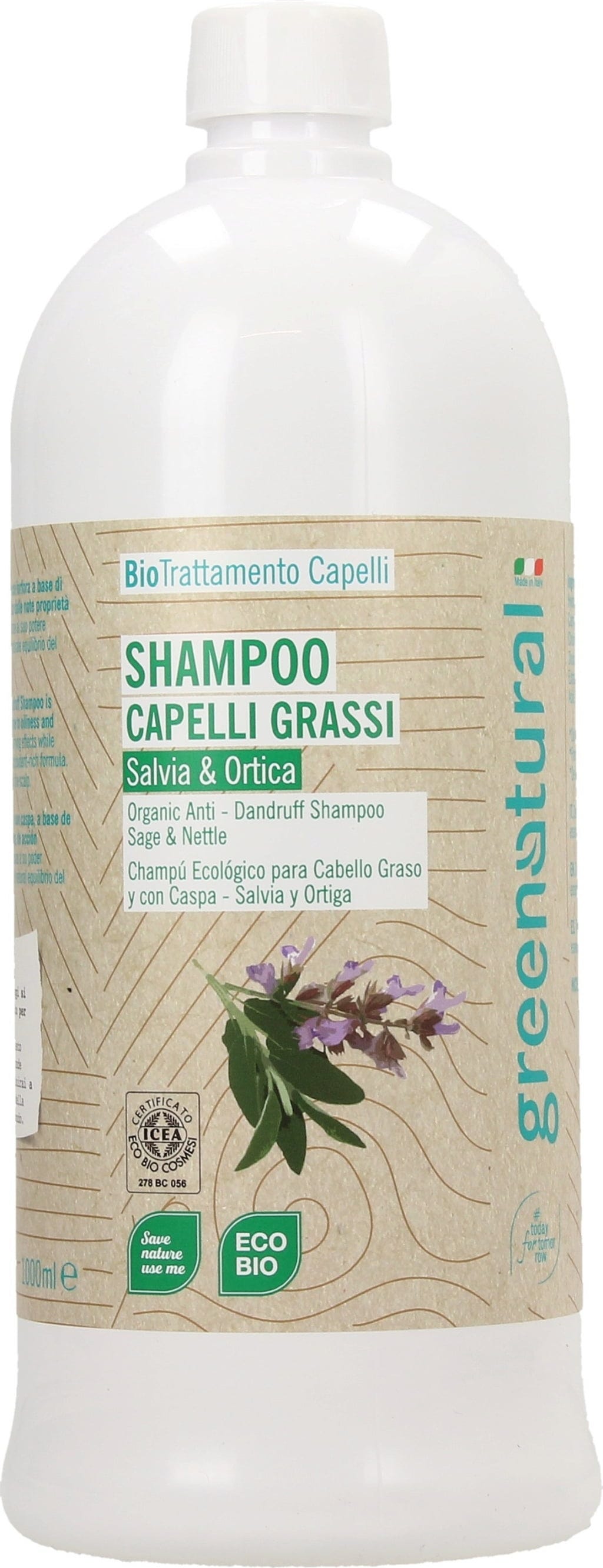 greenatural Șampon anti-mătreață cu salvie și urzică, 1000 ml (1 l)