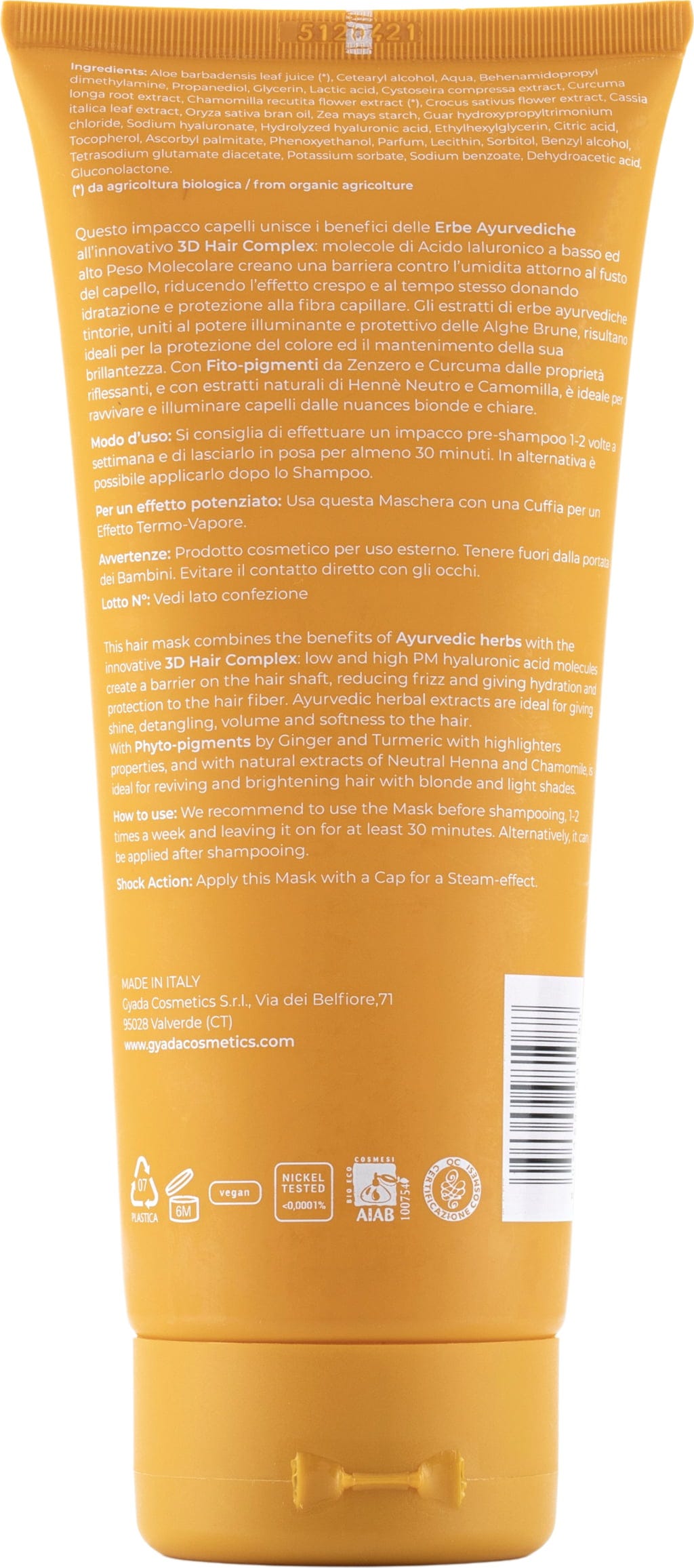 GYADA Cosmetics Mască de păr pentru strălucirea culorii Hyalurvedic Gold Hair, 200 ml