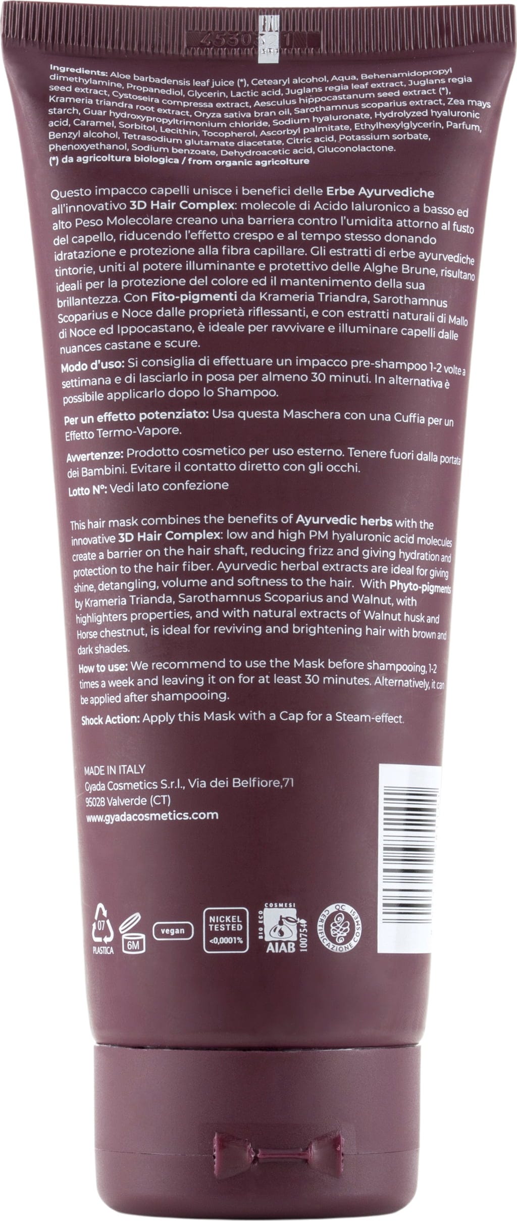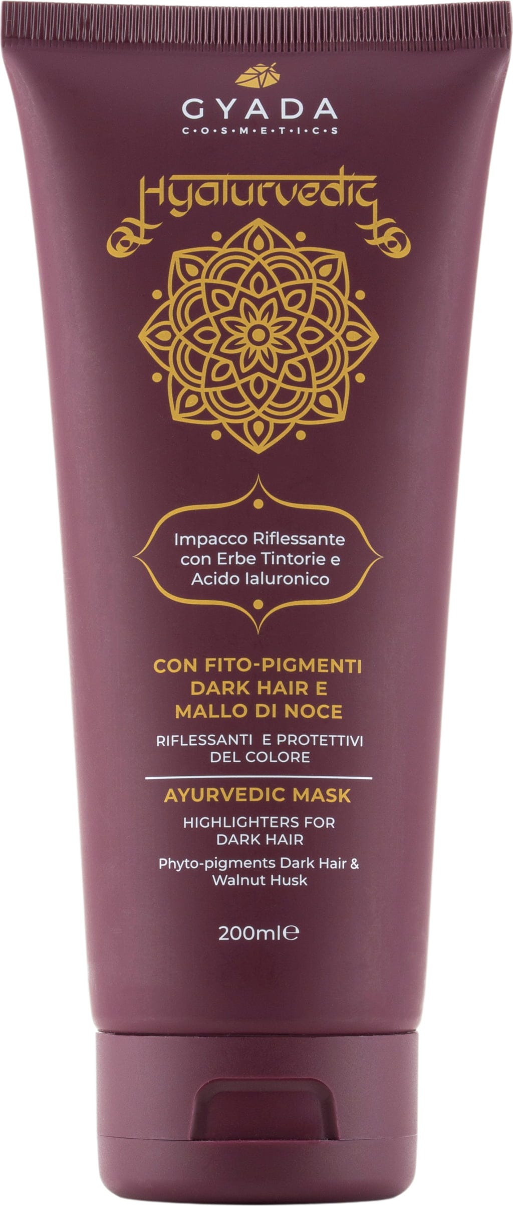 GYADA Cosmetics Masca pentru păr Hyalurvedic cu strălucire de culoare pentru păr închis, 200 ml