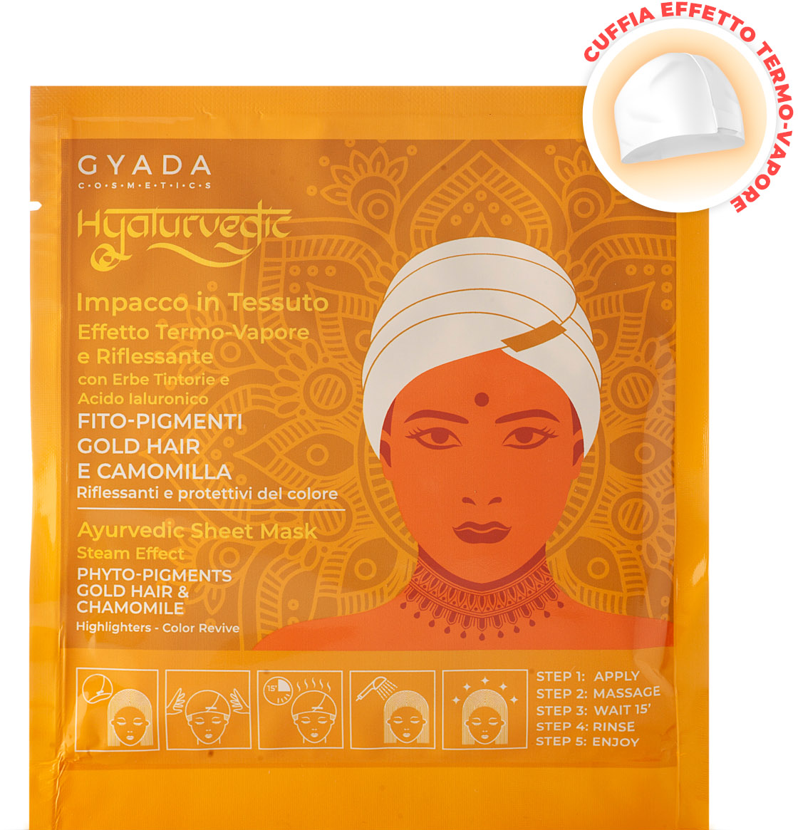 GYADA Cosmetics Masca pentru păr Hyalurvedic Strălucire de culoare Gold Hair, 60 ml