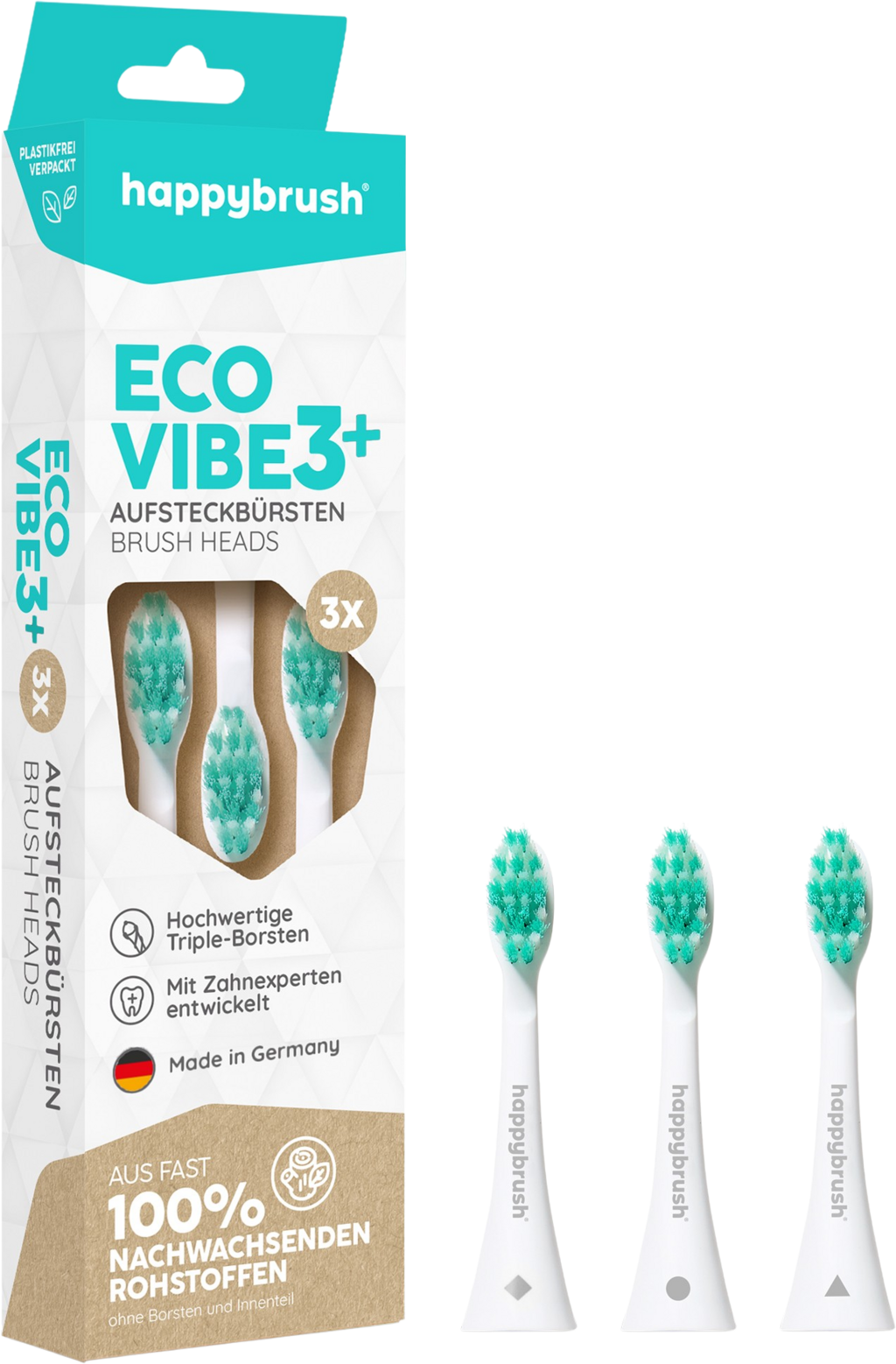 happybrush ECO VIBE 3+ Capete de periuță White