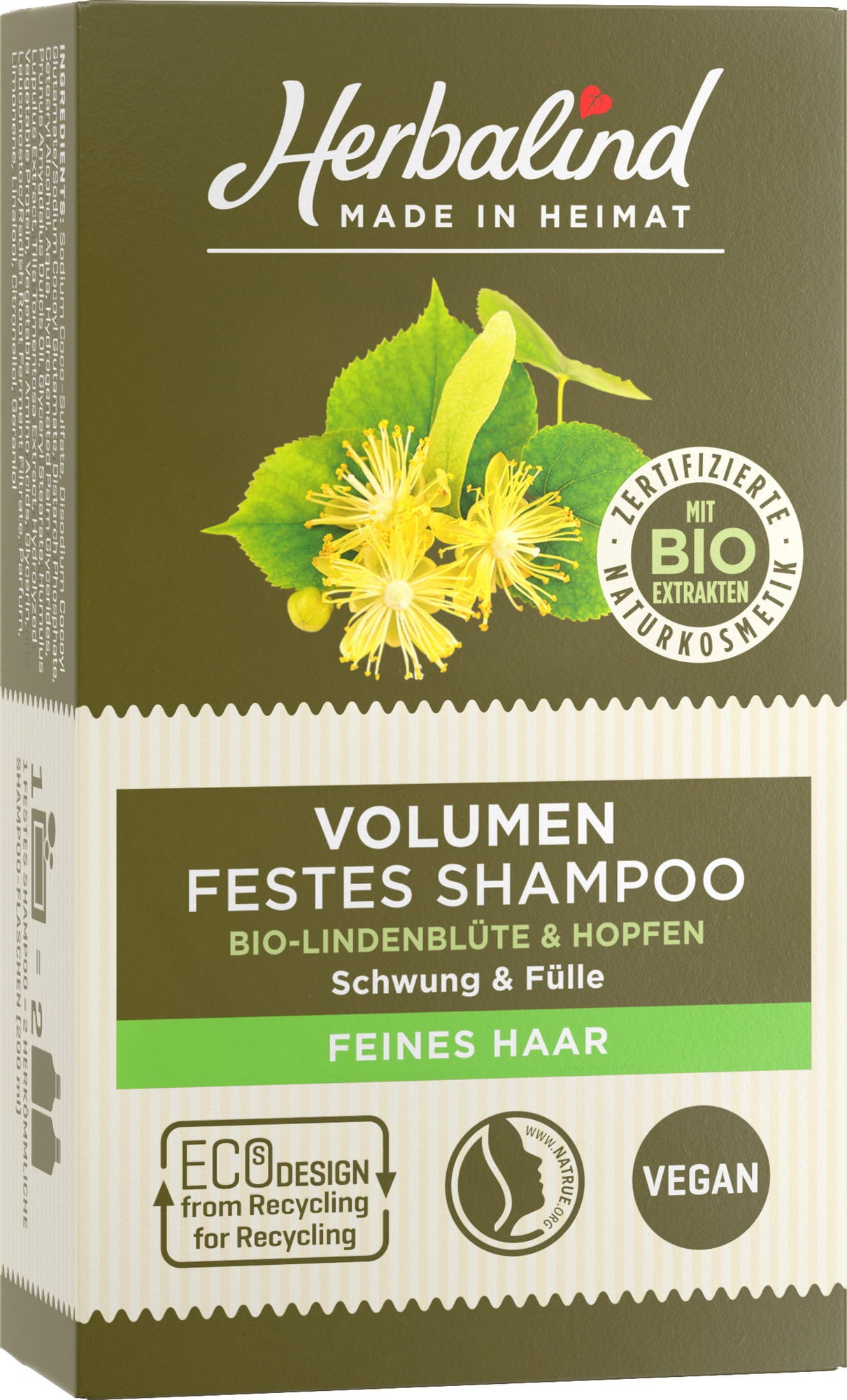 Compoziția acestui Shampoo Bar, realizată din componente naturale valoroase, îi conferă o putere unică. Proprietățile fortifiante ale hameiului, în combinație cu caracterul blând al florii de tei bio, oferă părului subțire și fin o structură fermă. În același timp, acest șampon spumos îngrijește și scalpul, lăsând o senzație de relaxare și liniște.