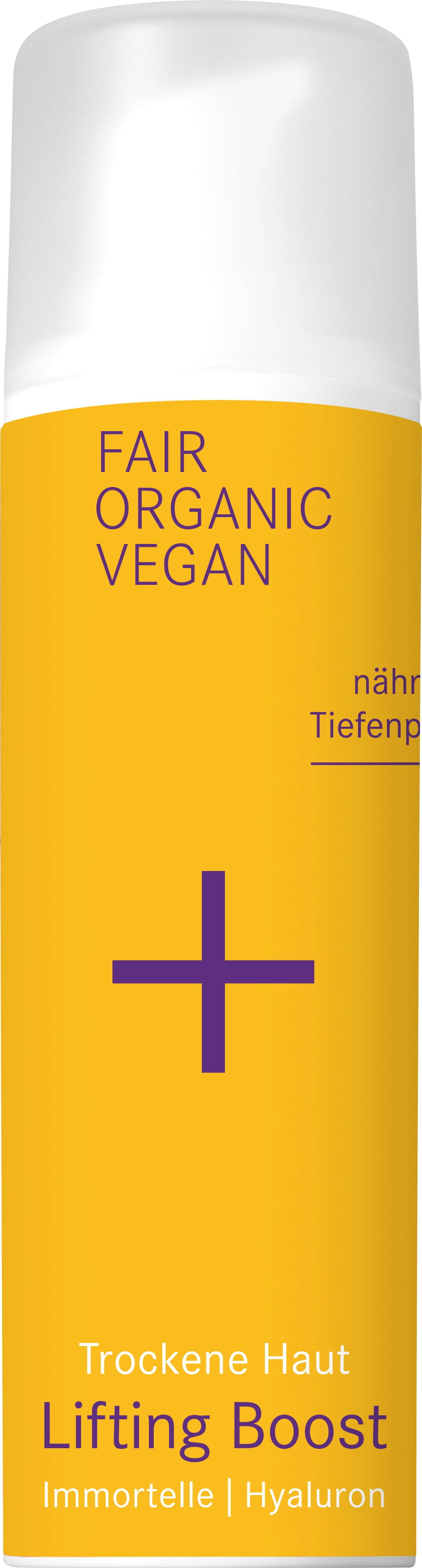 Numele Lifting Boost spune deja totul, deoarece complexul său vegetal cu extracte blânde și uleiuri fine oferă pe de o parte un efect de netezire și pe de altă parte un impuls intens de hidratare. Imortela stimulează producția de colagen a pielii, hibiscusul alb și uleiul de argan de calitate superioară își desfășoară proprietățile antioxidante, iar aloe protejează pielea împotriva deshidratării. Textura extrem de ușoară a Lifting Boost lasă, de asemenea, un caracter de regenerare celulară și îți oferă o senzație de catifelare pe tot parcursul zilei.