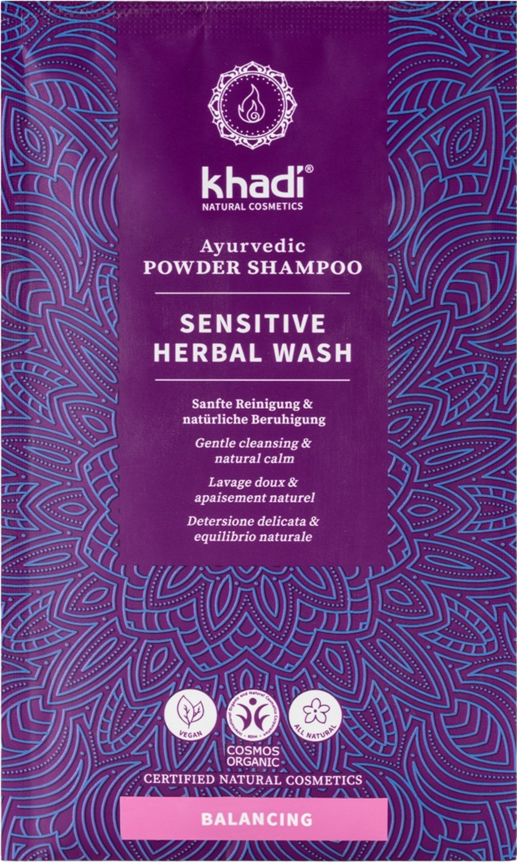 Sensitive Herbal Wash este un amestec de plante ayurvedice deosebit de delicat cu pielea, care curăță părul și scalpul extrem de blând. În același timp, are proprietăți calmante și un efect intens de îngrijire și echilibrare. Compoziția este adaptată exact tipurilor de piele sensibilă și poate fi utilizată și pentru părul fin al copiilor.