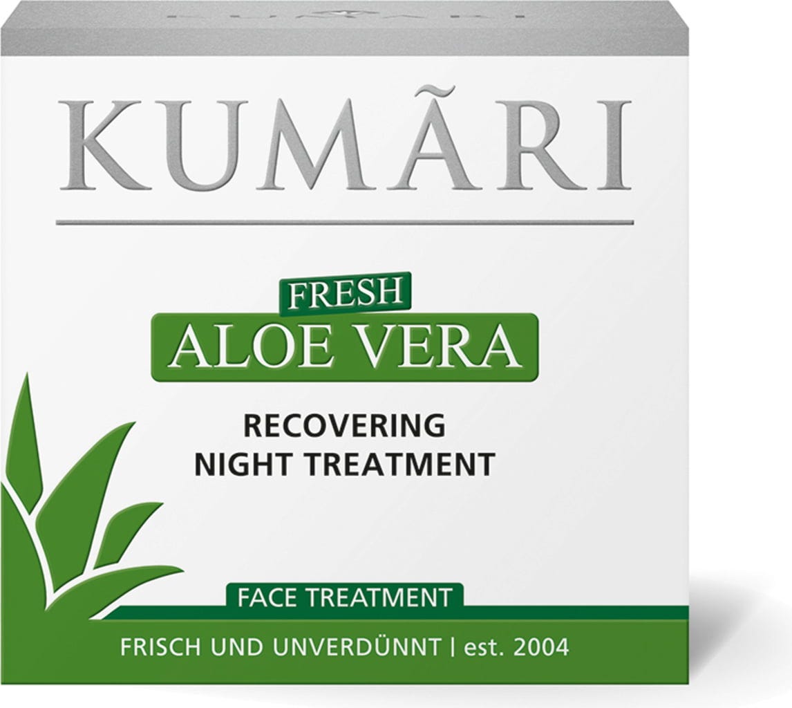 Noaptea, pielea are timp să se recupereze de stresul zilei. Îngrijirea de noapte bogată de la KUMARI o susține cu combinația sa specială de ingrediente active vegetale. Acidul hialuronic, untul de shea și uleiul de măsline, combinate cu suc de Aloe Vera, pătrund adânc în piele, oferind hidratare intensă. Pielea este susținută în regenerarea sa naturală, iar ridurile sunt diminuate.