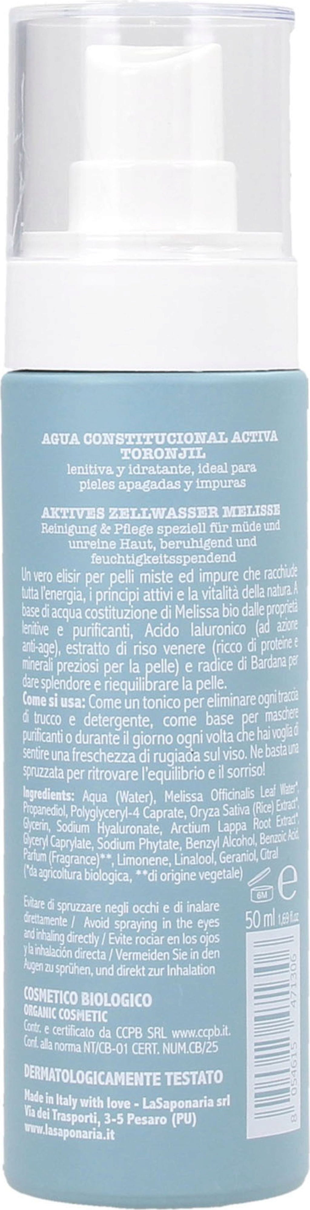 Această apă activă de roiniță are proprietăți de îngrijire și echilibrare, fiind ideală pentru a reda vitalitatea și strălucirea tenului gras și tern. Conține roiniță, acid hialuronic, extract de orez și rădăcină de brusture, toate având proprietăți hrănitoare și purificatoare, fiind utilizate și în îngrijirea anti-aging.
