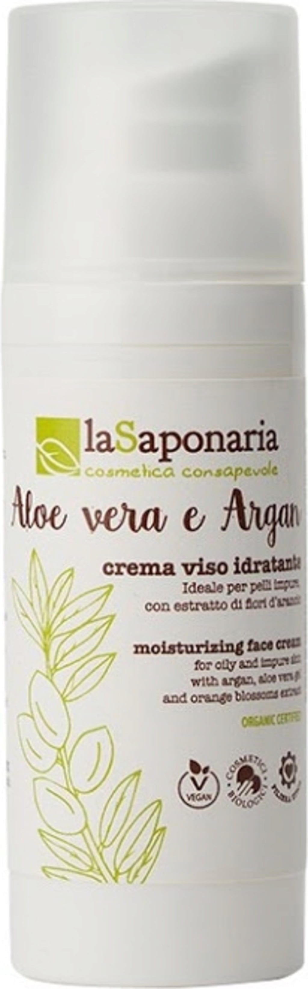 La Saponaria Cremă de Față Hidratantă Aloe Vera și Argan, 50 ml