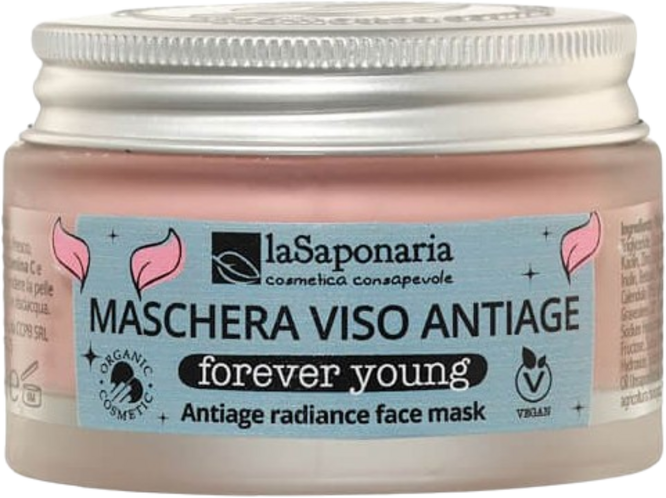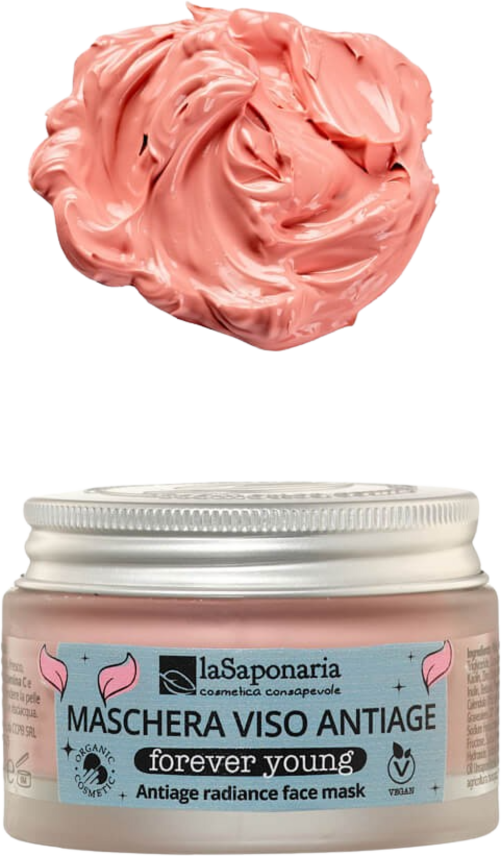 Masca de față Forever Young a fost dezvoltată pentru tenul matur și răsfață cu ingrediente active selecționate. Aceasta oferă o îngrijire intensivă, care posedă proprietăți tonifiante, de fermitate, precum și de uniformizare. Formula sa conține apă constituțională de rodie, acid hialuronic, fitoretinol, vitamina C, extracte de stânjenel și cofeină, care, în sinergie cu prebioticele, caolinul și pudra de orez, oferă o îngrijire completă și furnizează pielii tot ceea ce are nevoie.