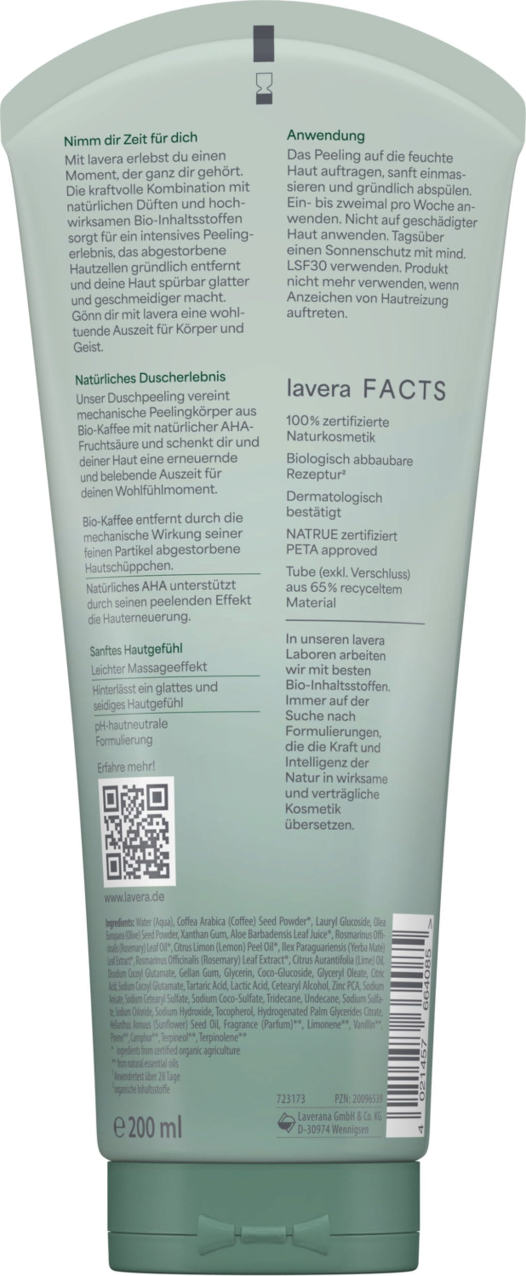 Aqua, Coffea Arabica (Coffee) Seed Powder[1], Lauryl Glucoside, Olea Europaea (Olive) Seed Powder, Xanthan Gum, Aloe Barbadensis Leaf Juice[1], Rosmarinus Officinalis Leaf Oil[1], Citrus Lemon Peel Oil[1], Ilex Paraguariensis Leaf Extract[1], Rosmarinus Officinalis Leaf Extract[1], Citrus Aurantifolia Oil, Disodium Cocoyl Glutamate, Gellan Gum, Glycerin, Coco Glucoside, Glyceryl Oleate, Citric Acid, Sodium Cocoyl Glutamat, Tartaric Acid, Lactic Acid, Cetearylalcohol, Zinc Pca, Sodium Anisate, Sodium Cetearyl Sulfate, Sodium Coco Sulfate, Tridecane, Undecane, Sodium Sulfate, Sodium Chloride, Sodium Hydroxyde, Tocopherol (Vitamin E), Hydrogenated Palm Glycerides Citrate, Helianthus Annus (Sunflower) Seed Oil, Fragrance[2], Limonene[2], Vanillin[2], Pinene[2], Camphor[2], Terpineol[2], Terpinolene[2]