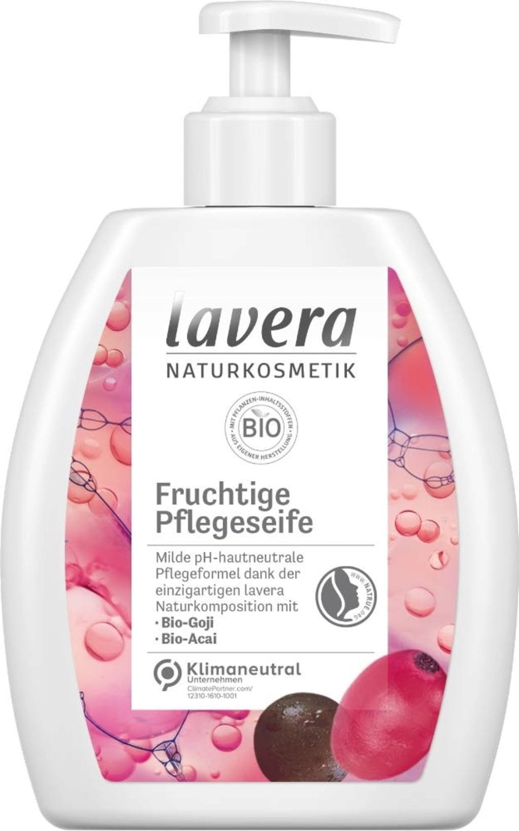 Compusă cu grijă și echilibrată, formula cu extracte organice de Goji și Acai oferă o curățare a mâinilor blândă și compatibilă cu pielea, fără a o usca. Săpunul de îngrijire are un pH neutru pentru piele, face o spumă delicată și oferă o senzație plăcută de îngrijire.
