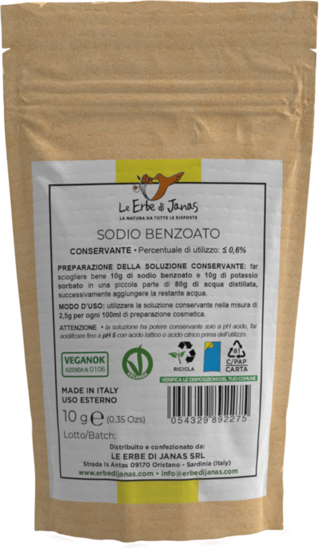 Le Erbe di Janas Benzoat de sodiu (Sodium Benzoate), 10 g