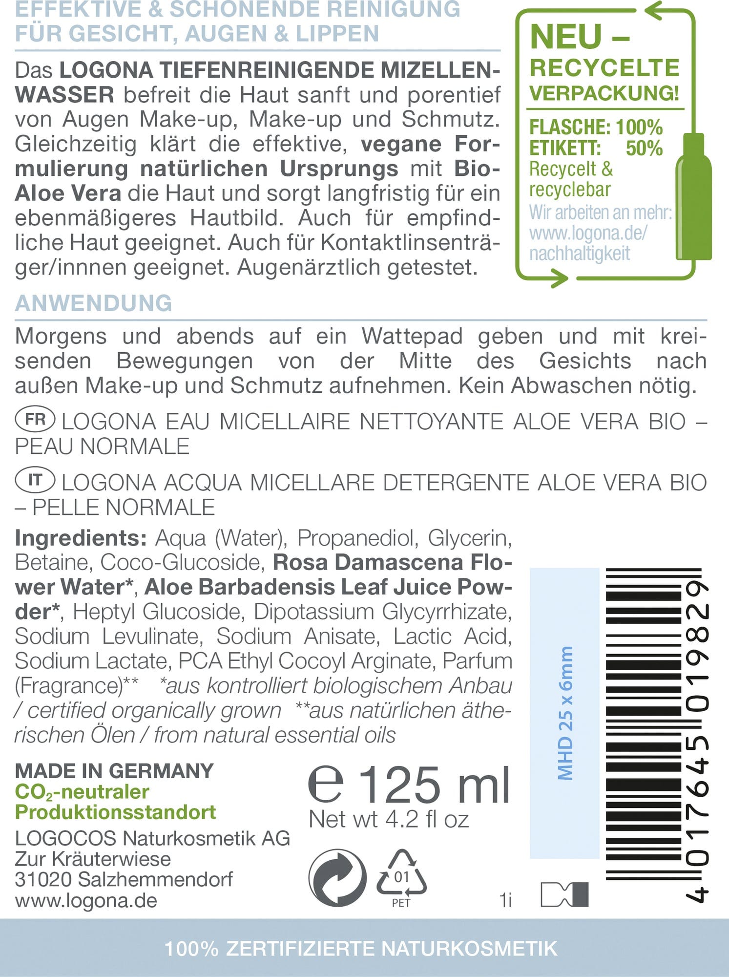Logona CLASSIC Apă micelară, 125 ml