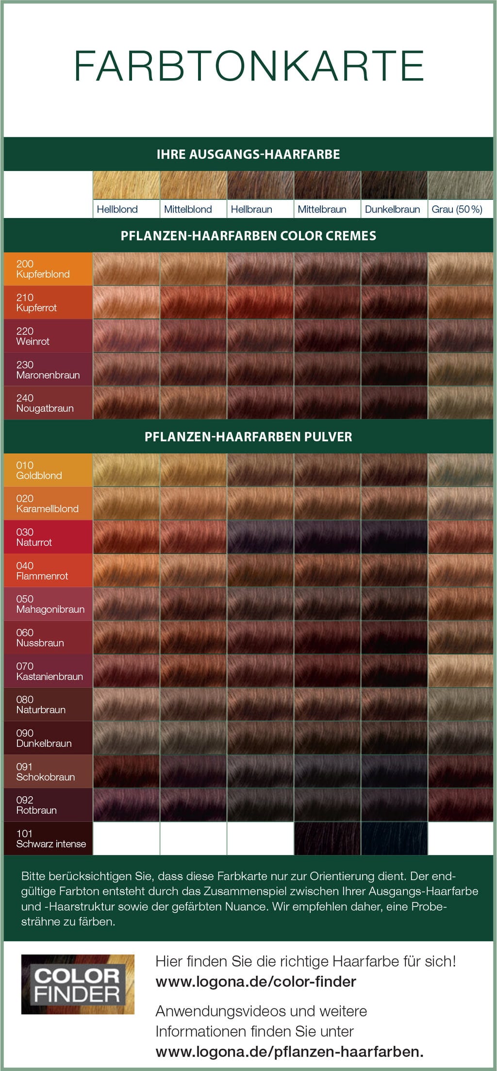 - Vopselele de păr pe bază de plante de la Logona sunt deosebit de blânde și colorează părul mai delicat decât vopselele chimice. Ele nu atacă direct structura firului de păr, ci formează un strat protector în jurul acestuia.