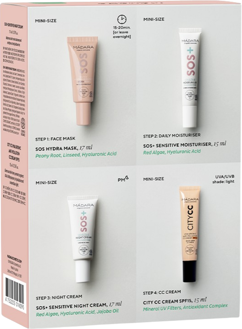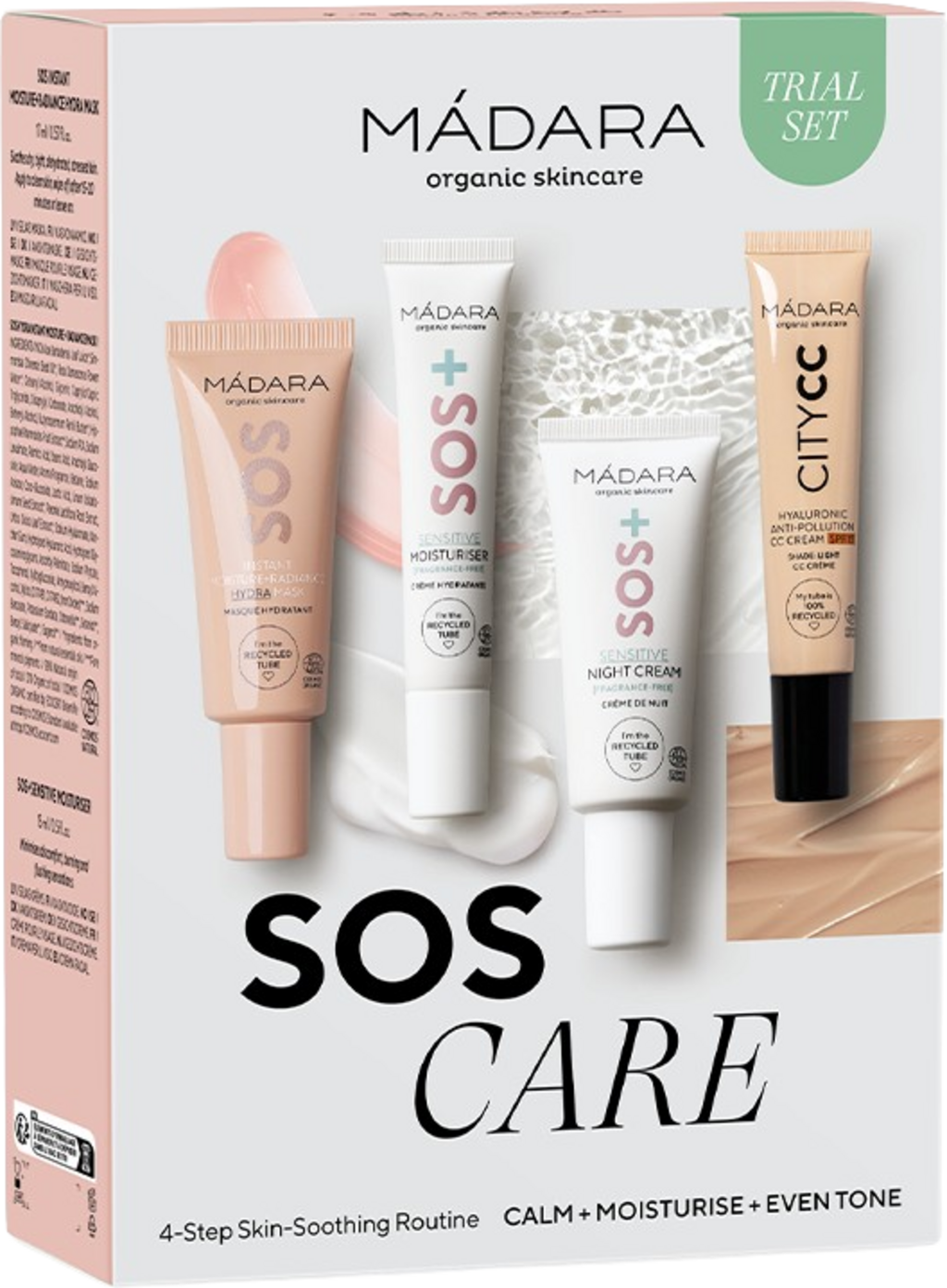 MÁDARA Organic Skincare SOS CARE 4-Step Skin-Soothing Routine Set, Light