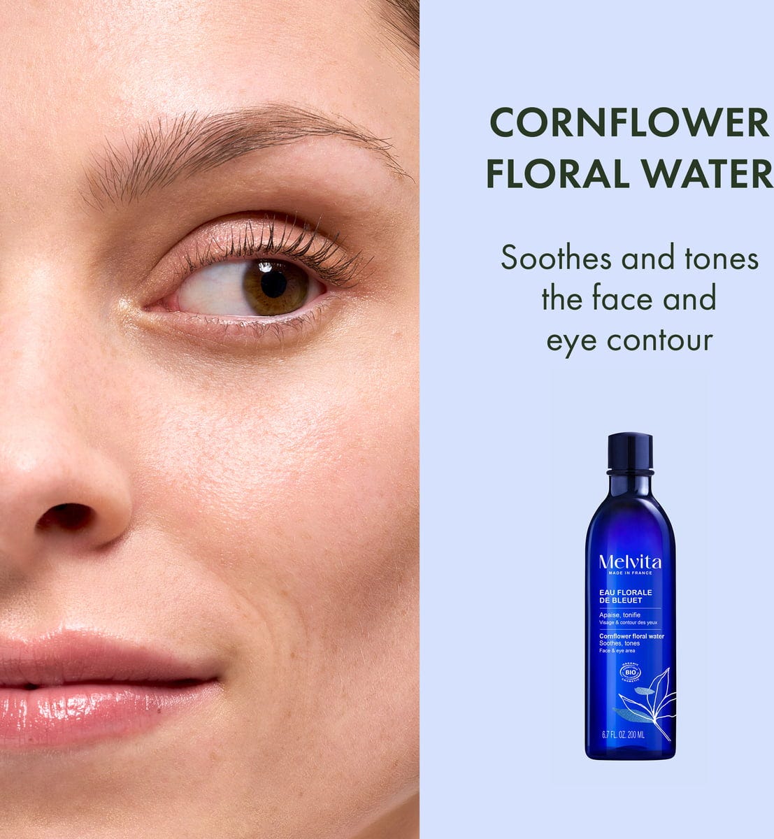 Cu apa florală de albăstrele, pielea obosită devine mai vitalizată și reîmprospătată! Este un adevărat boost de frumusețe într-o sticlă și conferă tenului un aspect mai radiant.